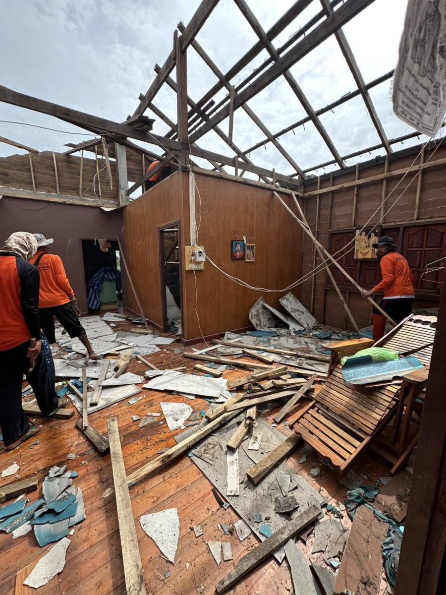 ในส่วนพื้นที่ตำบลบ้านขาวอำเภอระโนด จังหวัดสงขลา (กรณีโดนพายุหมุน) ก่อสร้างใหม่ จำนวน 3 หลัง ซ่อมหลังคาจำนวน 2 หลัง