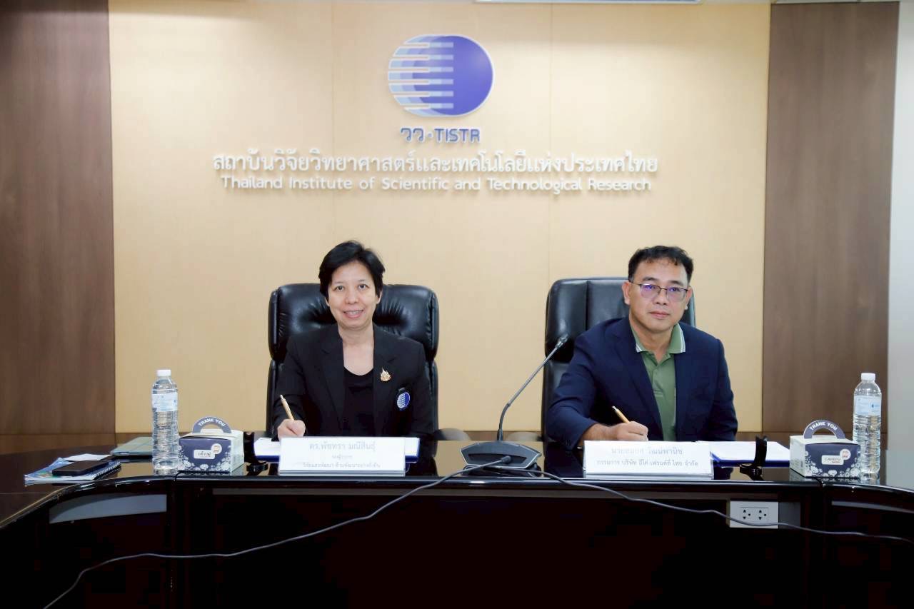 ดร.พัชทรา มณีสินธุ์ รองผู้ว่าการวิจัยและพัฒนาด้านพัฒนาอย่างยั่งยืน สถาบันวิจัยวิทยาศาสตร์และเทคโนโลยีแห่งประเทศไทย (วว.) กระทรวงการอุดมศึกษา วิทยาศาสตร์ วิจัยและนวัตกรรม (อว.) ร่วมลงนามบันทึกข้อตกลงบริการวิจัยกับ นายสมยศ วัฒน์พานิช กรรมการ บริษัท อีโค่ เฟรนด์ลี่ ไทย จำกัด ในโครงการพัฒนากระบวนการทำความสะอาดกล่องบรรจุภัณฑ์ UHT เพื่อพัฒนากระบวนการรวบรวม และทำความสะอาดกล่องบรรจุภัณฑ์ UHT ให้มีคุณภาพตรงตามความต้องการของอุตสาหกรรมปลายทาง โดยใช้สารเร่งตกตะกอนโคแอกกูแลนด์ ซึ่ง วว. มีองค์ความรู้และทรัพย์สินทางปัญญาด้านกรรมวิธีการผลิตสารเร่งตกตะกอนคอมโพสิทร่วมกับซีโอไลต์ชนิดโพลิอลูมินั่มซิลิเกตคลอไรด์ โดยใช้เครื่องซักล้างเกล็ดพลาสติกแบบต่อเนื่องระบบแปรงกวาดร่วมกับหัวฉีดละอองน้ำ เพื่อให้เกิดการขับเคลื่อนตามหลักการเศรษฐกิจหมุนเวียน (Circular Economy) และมุ่งสู่การพัฒนาอย่างยั่งยืน โอกาสนี้ ดร.เรวดี อนุวัฒนา ผู้อำนวยการ ศูนย์เชี่ยวชาญนวัตกรรมวัสดุ วว. ผู้บริหาร นักวิจัยและบุคลาการทั้งสองหน่วยงาน ร่วมเป็นเกียรติและแสดงความยินดีด้วย ในวันที่ 13 มกราคม 2569 ณ ห้องประชุม กวท. ชั้น 8 อาคาร RD 1 วว. เทคโนธานี คลองห้า จ.ปทุมธานี