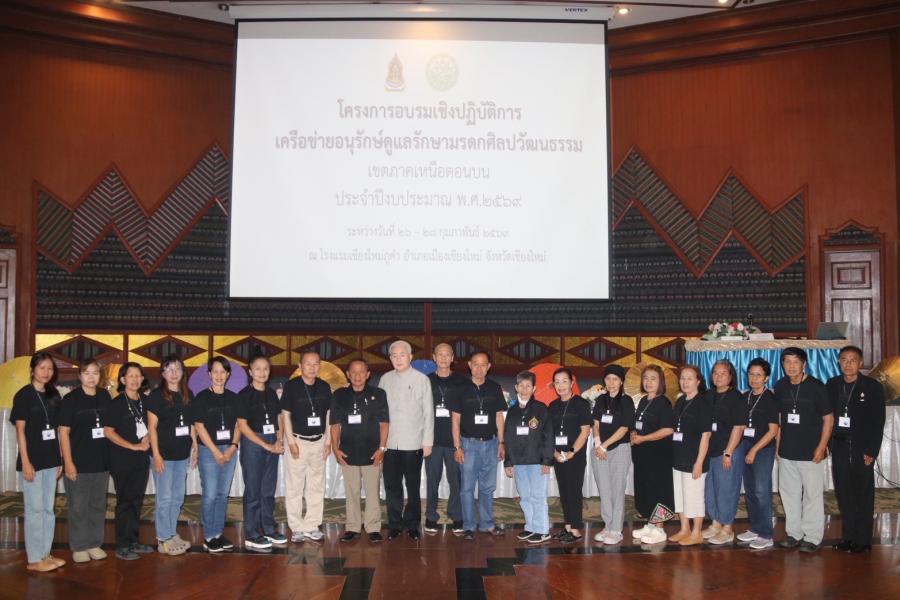 การอบรมเชิงปฏิบัติการเครือข่ายอนุรักษ์ดูแลรักษามรดกทางศิลปวัฒนธรรม เขตภาคเหนือตอนบนประจำปีงบประมาณ พ.ศ. 2569 จัดขึ้นระหว่างวันที่ 26 – 28 กุมภาพันธ์ 2569 ณ จังหวัดเชียงใหม่ โดยมีการบรรยายเสริมสร้างความรู้ ความเข้าใจในบทบาทหน้าที่ของเครือข่ายอนุรักษ์ ความรู้เกี่ยวกับแนวทางและมาตรฐานในการดูแลรักษามรดกทางศิลปวัฒนธรรมด้านโบราณสถานศิลปกรรมในเขตโบราณสถาน และโบราณวัตถุ ศิลปวัตถุ ตลอดจนมรดกทางศิลปวัฒนธรรมอื่นๆ ส่งเสริมให้เล็งเห็นคุณค่าและความสำคัญของมรดกทางศิลปวัฒนธรรมที่มีต่อชาติและท้องถิ่น รวมถึงความรู้ด้านกฎหมาย กฎ ระเบียบที่เกี่ยวข้อง ภายใต้หน้าที่และความรับผิดชอบของกรมศิลปากร โดยวิทยากรผู้ทรงคุณวุฒิ นอกจากนี้ยังนำผู้เข้าร่วมอบรมศึกษาดูงานการบูรณะโบราณสถานในพื้นที่จังหวัดเชียงใหม่อีกด้วย