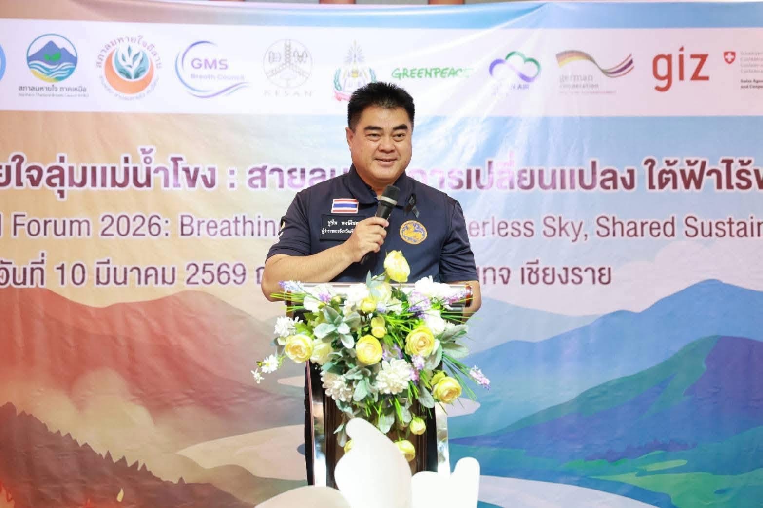 วันที่ 10 มีนาคม 2569 ภาคีเครือข่ายจัดการประชุมระดับนานาชาติ จัดตั้งสภาลมหายใจลุ่มแม่น้ำโขง : สายลมแห่งการเปลี่ยนแปลง ใต้ฟ้าไร้พรมแดนที่ยั่งยืน GMS Breath Council Forum 2026 : Breathing Together Borderless Sky Shared Sustainability ณ โรงแรมเดอะ เฮอริเทจ จังหวัดเชียงราย