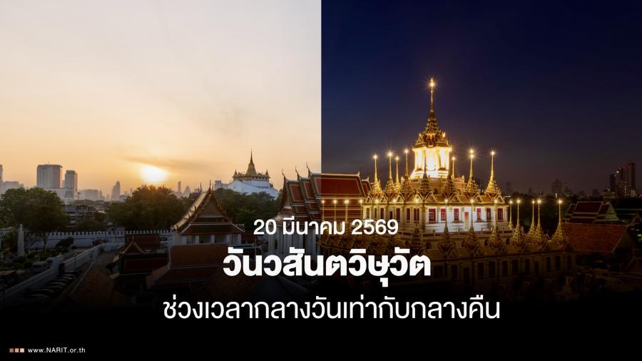 สถาบันวิจัยดาราศาสตร์แห่งชาติ (องค์การมหาชน) (สดร. หรือ NARIT) กระทรวงการอุดมศึกษา วิทยาศาสตร์ วิจัย และนวัตกรรม (อว.) เผยวันที่ 20 มีนาคม 2569 เป็น “วันวสันตวิษุวัต” ช่วงเวลากลางวันเท่ากับกลางคืน ดวงอาทิตย์จะขึ้นจากขอบฟ้าทางทิศตะวันออกและจะตกทางทิศตะวันตกพอดี นับเป็นวันที่ประเทศทางซีกโลกเหนือย่างเข้าสู่ฤดูใบไม้ผลิ และประเทศทางซีกโลกใต้ย่างเข้าสู่ฤดูใบไม้ร่วง