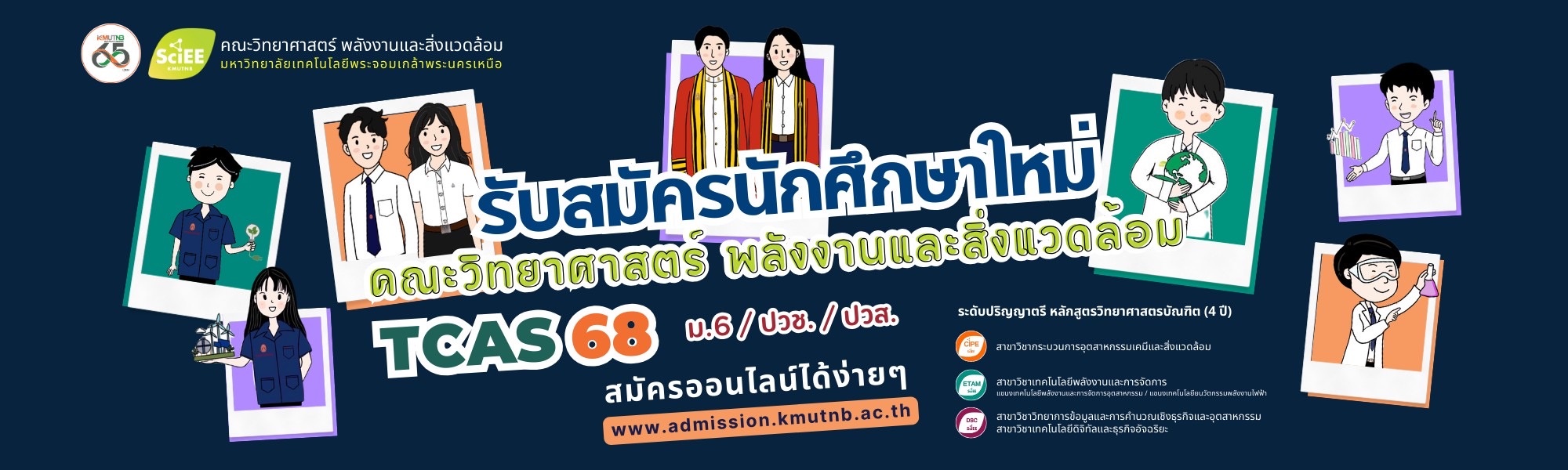 คณะวิทยาศาสตร์ พลังงานและสิ่งแวดล้อม มหาวิทยาลัยเทคโนโลยีพระจอมเกล้าพระนครเหนือ วิทยาเขตระยอง เปิดรับสมัครนักศึกษาเพื่อเข้าศึกษาต่อในระดับปริญญาตรี 4 ปี หลักสูตรวิทยาศาสตรบัณฑิต โครงการโควตาผลิตบัณฑิตเพื่อรองรับอุตสาหกรรมเศรษฐกิจ BCG model ประจำปีการศึกษา 2568 ระดับชั้นมัธยมศึกษาตอนปลาย (ม.6) หรือระดับประกาศนียบัตรวิชาชีพ (ปวช.) รับสมัครตั้งแต่วันนี้ - 6 ธันวาคม 2567 เท่านั้น