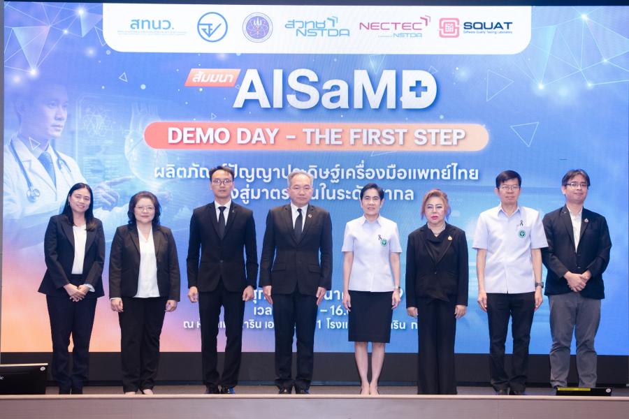 (วันที่ 20 มีนาคม 2569) ณ โรงแรมแมนดาริน กรุงเทพฯ: กระทรวงการอุดมศึกษา วิทยาศาสตร์ วิจัยและนวัตกรรม (อว.) สำนักงานพัฒนาวิทยาศาสตร์และเทคโนโลยีแห่งชาติ (สวทช.) โดย ศูนย์เทคโนโลยีอิเล็กทรอนิกส์และคอมพิวเตอร์แห่งชาติ (เนคเทค) ร่วมกับ สำนักงานคณะกรรมการอาหารและยา (อย.) สำนักงานเทคโนโลยีและนวัตกรรมด้านชีววิทยาศาสตร์ (องค์การมหาชน) (สทนว.) และรังสีวิทยาสมาคมแห่งประเทศไทย (รสท.) จัด ”AISaMD Demo Day: The first step ผลิตภัณฑ์ AI เครื่องมือแพทย์ไทย มุ่งสู่มาตรฐานในระดับสากล” ชูไฮไลต์ 5 ผลิตภัณฑ์ AI การแพทย์ที่ผ่านการทดสอบตามมาตรฐานสากล พร้อมประกาศลงนามความร่วมมือ 2 ฉบับสำคัญ ได้แก่ 1. การลงนามความร่วมมือด้านการวิจัยและพัฒนาการประเมิน ตรวจสอบ และทดสอบด้านสมรรถนะและความปลอดภัยของผลิตภัณฑ์เครื่องมือแพทย์รวมถึงเครื่องมือแพทย์ซอฟต์แวร์และปัญญาประดิษฐ์ ระหว่าง สทนว. สวทช. และ อย. และ 2.การลงนามความร่วมมือภายใต้โครงการพัฒนาหลักเกณฑ์และบริการทดสอบ สำหรับผลิตภัณฑ์ปัญญาประดิษฐ์เครื่องมือแพทย์ตามมาตรฐานสากล ระหว่าง เนคเทค-สวทช. และ รทส. เพื่อวางโครงสร้างพื้นฐานด้านการตรวจสอบและกำกับดูแลนวัตกรรมทางการแพทย์ของประเทศ