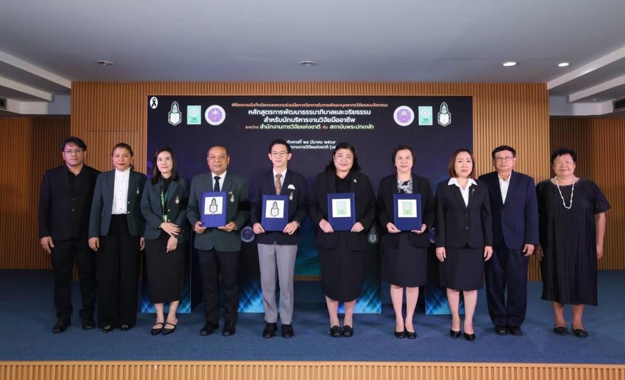 ดร.วิภารัตน์ ดีอ่อง ผู้อำนวยการสำนักงานการวิจัยแห่งชาติ กล่าวว่า วช. ในฐานะหน่วยงานที่มีบทบาทในการส่งเสริมและพัฒนาบุคลากรด้านการวิจัยและนวัตกรรมของประเทศ ตระหนักว่าความเข้มแข็งของระบบวิจัยขึ้นอยู่กับคุณภาพของบุคลากรผู้บริหารจัดการระบบ ซึ่งมีหน้าที่เชื่อมโยงนโยบายสู่การปฏิบัติ กำกับดูแลทรัพยากรสาธารณะ และผลักดันให้งานวิจัยก่อประโยชน์ต่อประเทศและประชาชนอย่างเป็นรูปธรรม โดยหลักสูตรการพัฒนาธรรมาภิบาลและจริยธรรมสำหรับนักบริหารงานวิจัยมืออาชีพภายใต้บันทึกข้อตกลงฉบับนี้ จะมุ่งเชื่อมโยงหลักการสู่การปฏิบัติผ่านการวิเคราะห์สถานการณ์จริง การแลกเปลี่ยนประสบการณ์ และกรณีศึกษา เพื่อพัฒนานักบริหารงานวิจัยให้เป็นมืออาชีพ ควบคู่กับการยึดมั่นในธรรมาภิบาลและจริยธรรม อันจะส่งผลต่อการยกระดับคุณภาพระบบวิจัยของประเทศให้มีความโปร่งใส คุ้มค่า และได้รับความเชื่อมั่นจากสังคมทั้งในระดับประเทศและนานาชาติ