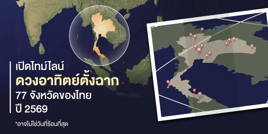 เปิดไทม์ไลน์วัน-เวลาดวงอาทิตย์ตั้งฉาก 77 จังหวัด ของประเทศไทย ทั้ง 2 ครั้งในปี 2569
