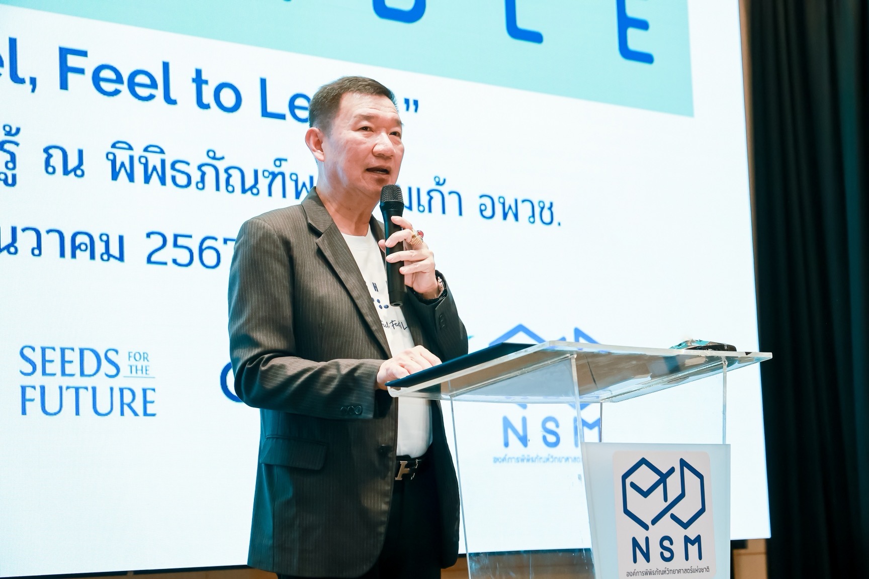 นายสุวรงค์ วงษ์ศิริ รองผู้อำนวยการองค์การพิพิธภัณฑ์วิทยาศาสตร์แห่งชาติ (อพวช.) หรือ NSM “ปัจจุบันพิพิธภัณฑ์หลายแห่งมุ่งมั่นที่จะเป็นพื้นที่สาธารณะที่ทุกคนเข้าถึงได้อย่างเท่าเทียม โดยเฉพาะผู้ที่มีความต้องการพิเศษ อพวช. ร่วมกับพันธมิตร ได้แก่ Museum Mind และ Kid D Ability ได้พัฒนาสื่อต้นแบบด้านวิทยาศาสตร์ธรรมชาติที่สามารถสัมผัสได้ ภายใต้โครงการ Touchable: Touch to Feel Feel to Learn เพื่อเปิดโอกาสให้ผู้พิการทางสายตาได้เรียนรู้วิทยาศาสตร์อย่างสนุกสนานและเข้าใจง่ายยิ่งขึ้น