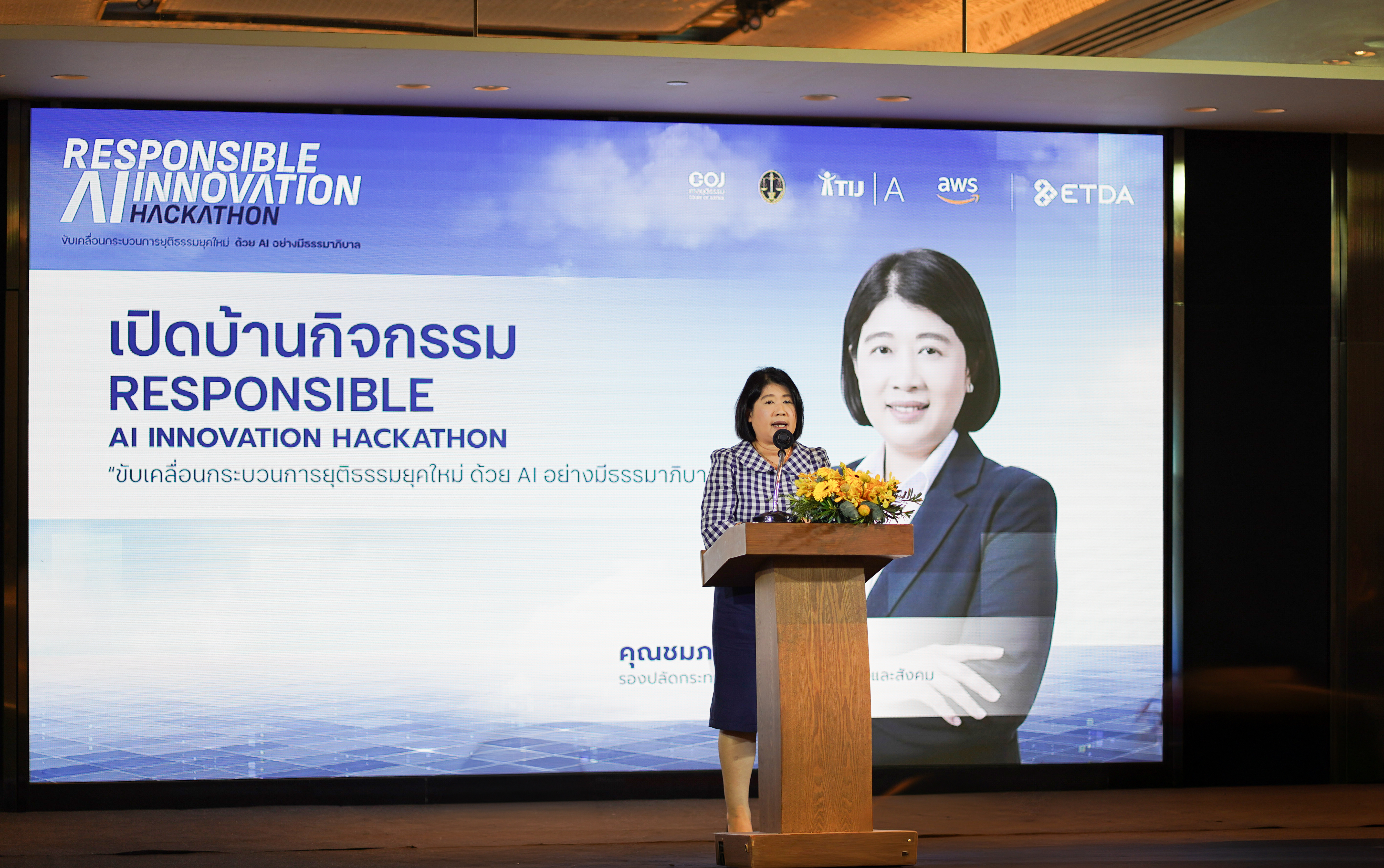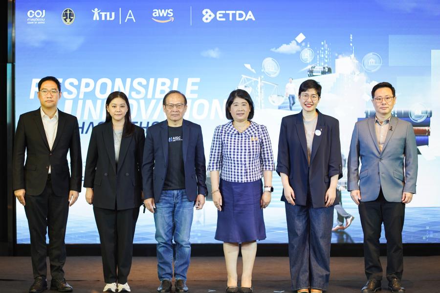 กระทรวงดิจิทัลเพื่อเศรษฐกิจและสังคม (ดีอี) สำนักงานพัฒนาธุรกรรมทางอิเล็กทรอนิกส์ (สพธอ.) หรือ ETDA (เอ็ตด้า) โดย ศูนย์ธรรมาภิบาลปัญญาประดิษฐ์ (AIGC) ร่วมกับ สำนักงานศาลยุติธรรม สำนักงานศาลปกครอง สำนักพัฒนาบุคลากรเพื่อการยุติธรรม สถาบันเพื่อการยุติธรรมแห่งประเทศไทย (TIJ Academy) และบริษัท อะเมซอน เว็บ เซอร์วิสเซส (AWS) เดินหน้าเวที “Responsible AI Innovation Hackathon: AI for Justice” ประเดิมกิจกรรมปฐมนิเทศและฝึกอบรม เตรียมพร้อม 10 ทีมผู้ผ่านเข้ารอบ ไปกับเหล่าผู้เชี่ยวชาญด้าน AI และผู้ทรงคุณวุฒิด้านกระบวนการยุติธรรมไทยเพื่อร่วมพัฒนาโซลูชัน AI ที่ตอบโจทย์กระบวนการยุติธรรมไทย ภายใต้หลักจริยธรรมและธรรมาภิบาลที่มาพร้อมความรับผิดชอบ