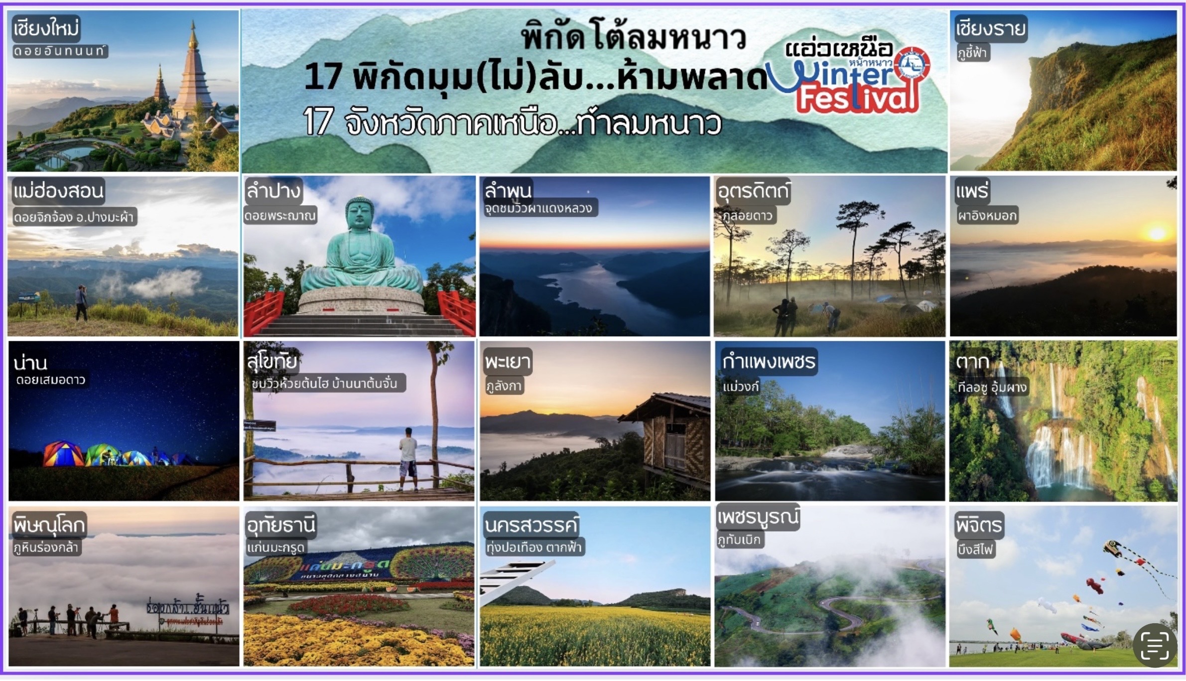 #ต่อยอดผสมผสานกับแนวคิดใหม่ๆพร้อมเสริ์ฟเมนูประสบการณ์ท่องเที่ยวที่ต้องเดินทางออกไปค้นหาใน 17 แหล่ง 17 สไตล์ 17 จังหวัดภาคเหนือ ใน 12 เดือน ตลอดทั้งปี ดังนี้