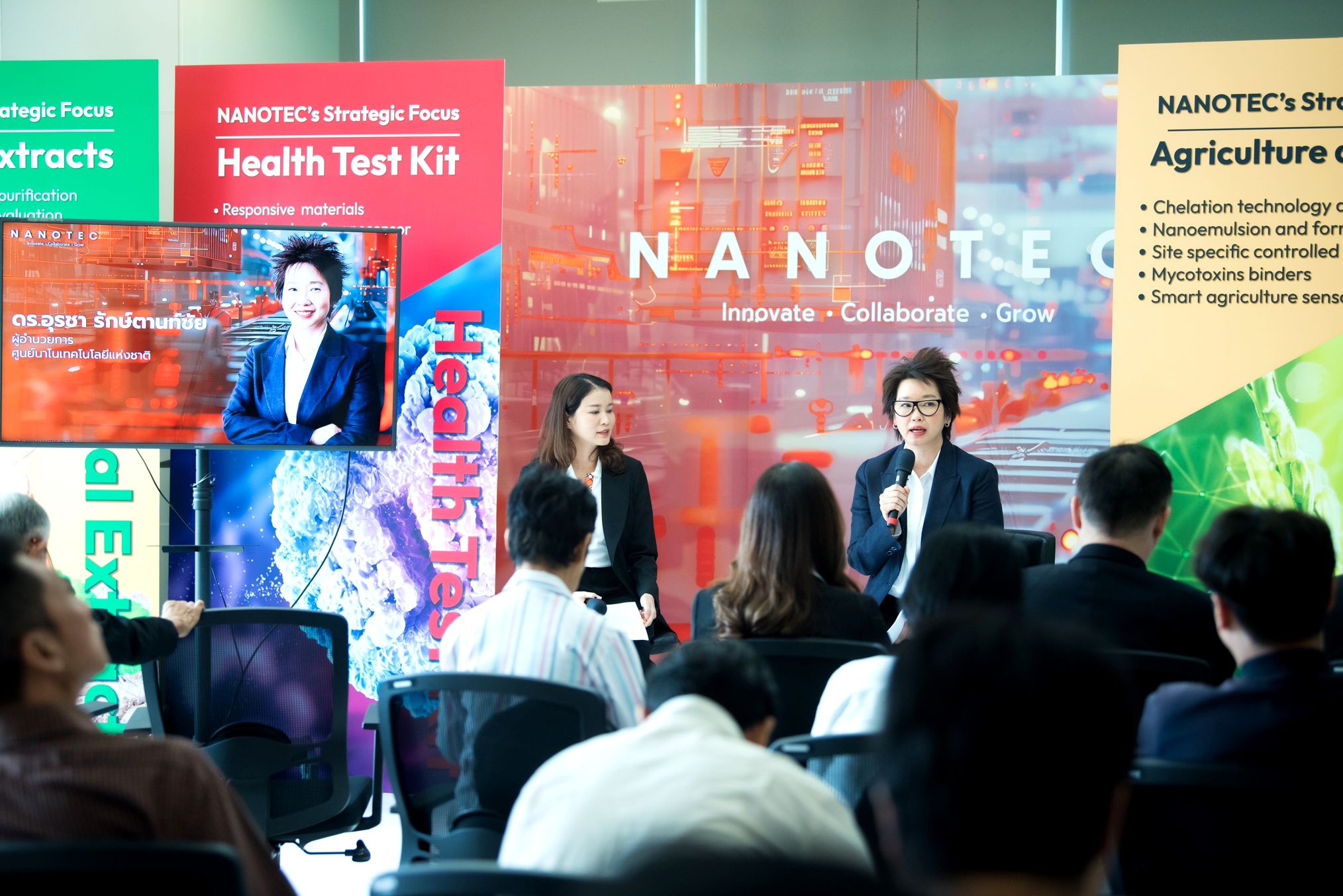 ”เสื้อนาโน มุ้งนาโน โลชั่นกันยุงนาโน SOS Water เครื่องผลิตน้ำพลังแสงอาทิตย์ หรือไข่ออกแบบได้” นวัตกรรมในยุคแรกๆ ของนาโนเทค ที่มีการต่อยอดทั้งในเชิงการถ่ายทอดเทคโนโลยีให้กับภาคเอกชน รวมถึงเชิงสาธารณประโยชน์ โดยเฉพาะในช่วงภาวะฉุกเฉิน ก่อนขยับสู่เทคโนโลยีที่ก้าวหน้ากว่าเดิม เพื่อช่วยแก้ปัญหาที่ผู้ใช้ต้องการ อาทิ เวชสำอางจากพืชสมุนไพรต่างๆ อาทิ เห็ดหลินจือ หรือกลุ่ม Herbal Champion แผ่นกรองอากาศต้านเชื้อราแบคทีเรีย หรือการตอบโจทย์ความต้องการเร่งด่วนอย่างการแพร่ระบาดของเชื้อโควิด-19 อาทิ ชุดตรวจคัดกรองโควิด-19 (NANO Covid-19 Antigen Rapid Test) หมวกแรงดันบวก- ลบ ลดการแพร่เชื้อหรือสารฆ่าเชื้อต่างๆ” ดร. อุรชา ผู้อำนวยการศูนย์นาโนเทค กล่าวพร้อมย้ำว่า นาโนเทค2025 เราจะ ”รุก” ให้มากขึ้น