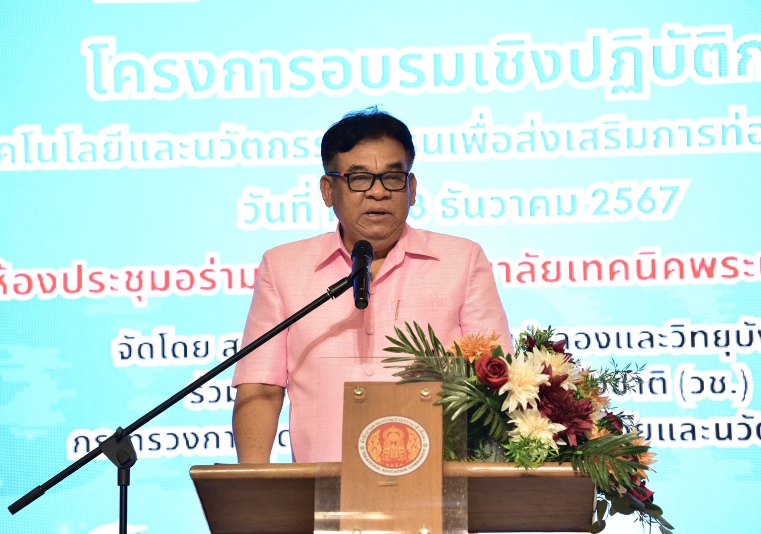 ดร.วิภารัตน์ ดีอ่อง ผู้อำนวยการสำนักงานการวิจัยแห่งชาติ (วช.) กล่าวถึงบทบาทของ วช. ในการส่งเสริมการเรียนรู้ด้านเทคโนโลยีปัญญาประดิษฐ์ AI โดยมุ่งเน้นการพัฒนาทักษะและสมรรถนะ ผ่านการใช้องค์ความรู้เกี่ยวกับโดรนแปรอักษร เพื่อเพิ่มพูนทักษะการอบรมและส่งเสริมการประยุกต์ใช้เทคโนโลยีในภาคอุตสาหกรรมการท่องเที่ยวในแต่ละพื้นที่ สำหรับโครงการอบรมเชิงปฏิบัติการ ”การประยุกต์ใช้เทคโนโลยีและนวัตกรรมโดรนเพื่อส่งเสริมการท่องเที่ยว ภาคกลาง ครั้งที่ 5” ซึ่งจัดขึ้นในจังหวัดพระนครศรีอยุธยา ณ วิทยาลัยเทคนิคพระนครศรีอยุธยา ครั้งนี้ มีเป้าหมายสำคัญเพื่อให้ผู้เข้าอบรมสามารถนำความรู้ด้านเทคโนโลยีปัญญาประดิษฐ์และโดรนแปรอักษรไปประยุกต์ใช้ในการส่งเสริมการท่องเที่ยวในพื้นที่จังหวัดพระนครศรีอยุธยาได้อย่างมีประสิทธิภาพสร้างโอกาสในการแข่งขัน เกิดการสร้างงานสร้างอาชีพในด้านการส่งเสริมการท่องเที่ยวให้กับจังหวัดพระนครศรีอยุธยา