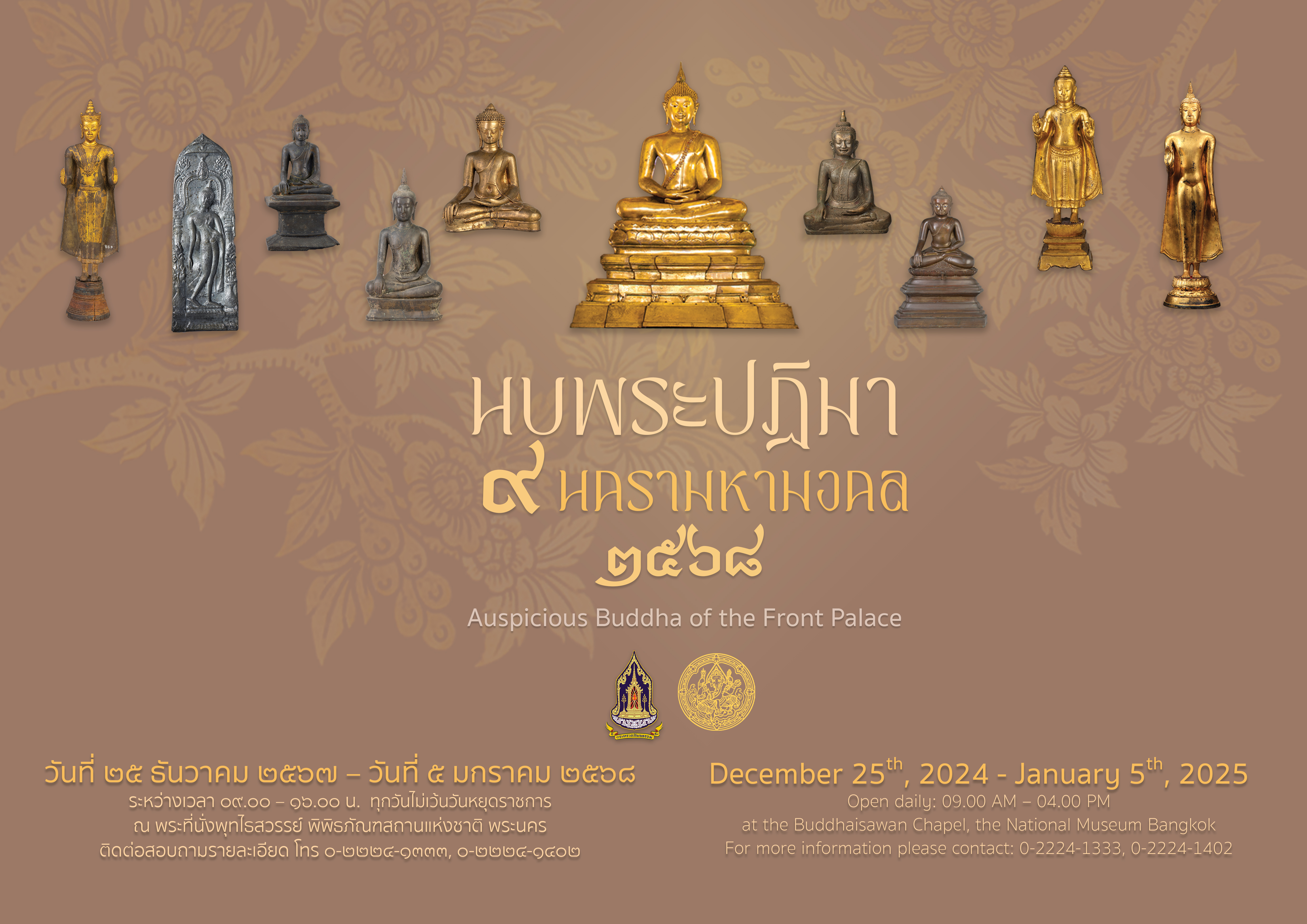 2. กิจกรรมสักการะ นบพระปฏิมา 9 นครามหามงคล 2568 สำนักพิพิธภัณฑสถานแห่งชาติ พิพิธภัณฑสถานแห่งชาติ พระนคร อัญเชิญพระพุทธรูปกอปรด้วยพุทธศิลป์อันงดงาม มีประวัติความเป็นมาจากนครโบราณต่าง ๆ ของไทย โดยมีพระพุทธสิหิงค์ พระพุทธรูปศักดิ์สิทธิ์ประจำพระราชวังบวรสถานมงคล (วังหน้า) เป็นพระประธาน พร้อมด้วยพระพุทธรูปอีก 9 องค์ ได้แก่ พระพุทธรูปปางมารวิชัย เมืองเชียงใหม่ พระพุทธรูปยืนปางแสดงธรรม 2 พระหัตถ์ เมืองลพบุรี พระพุทธรูปปางมารวิชัย เมืองสรรคบุรี จ.ชัยนาท พระพุทธรูปยืนปางประทานอภัย เมืองสุโขทัย พระพิมพ์ลีลาในซุ้มเรือนแก้ว (พระกำแพงศอก) เมืองสุพรรณบุรี พระพุทธรูปปางมารวิชัย พระนครศรีอยุธยา พระพุทธรูปปางมารวิชัย เมืองนครศรีธรรมราช พระพุทธรูปยืนปางประทานอภัย 2 พระหัตถ์ เมืองพิษณุโลก และพระชัยเมืองนครราชสีมา นำมาประดิษฐานให้พุทธศาสนิกชนได้สักการบูชาเพื่อความเป็นสิริมงคลในวาระแห่งการเริ่มต้นศักราชใหม่ ณ พระที่นั่งพุทไธสวรรย์ พิพิธภัณฑสถานแห่งชาติ พระนคร ระหว่างวันที่ 25 ธันวาคม 2567 ถึงวันที่ 5 มกราคม 2568 เวลา 09.00 – 16.00 น.