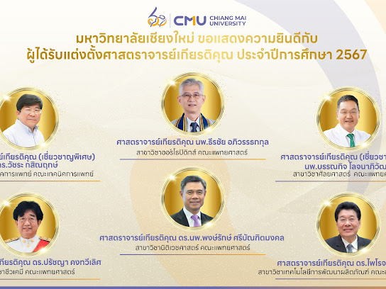 พร้อมกันนี้มีผู้ได้รับเกียรติบัตรศาสตราจารย์เกียรติคุณ จำนวน 6ท่าน ได้แก่ ศาสตราจารย์เกียรติคุณ (เชี่ยวชาญพิเศษ) ดร.วัชระ กสิณฤกษ์สาขาวิชาเทคนิคการแพทย์ คณะเทคนิคการแพทย์ ศาสตราจารย์เกียรติคุณ นพ.ธีรชัย อภิวรรธกกุล สาขาวิชาออร์โธปิดิกส์ คณะแพทยศาสตร์ ศาสตราจารย์เกียรติคุณ (เชี่ยวชาญพิเศษ) นพ.บรรณกิจ โลจนาภิวัฒน์ สาขาวิชาศัลยศาสตร์ คณะแพทยศาสตร์ ศาสตราจารย์เกียรติคุณ ดร.ปรัชญา คงทวีเลิศ สาขาวิชาชีวเคมี คณะแพทยศาสตร์ ศาสตราจาจารย์เกียรติคุณ ดร. นพ.พงษ์รักษ์ ศรีบัณฑิตมงคล สาขาวิชานิติเวชศาสตร์ คณะแพทยศาสตร์ ศาสตราจารย์เกียรติคุณ ดร.ไพโรจน์ วิริยจารี สาขาวิชาเทคโนโลยีการพัฒนาผลิตภัณฑ์ คณะอุตสาหกรรมเกษตร