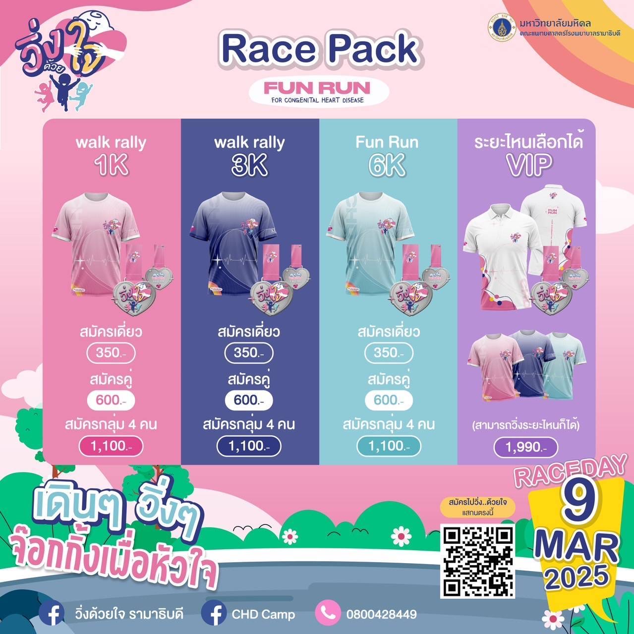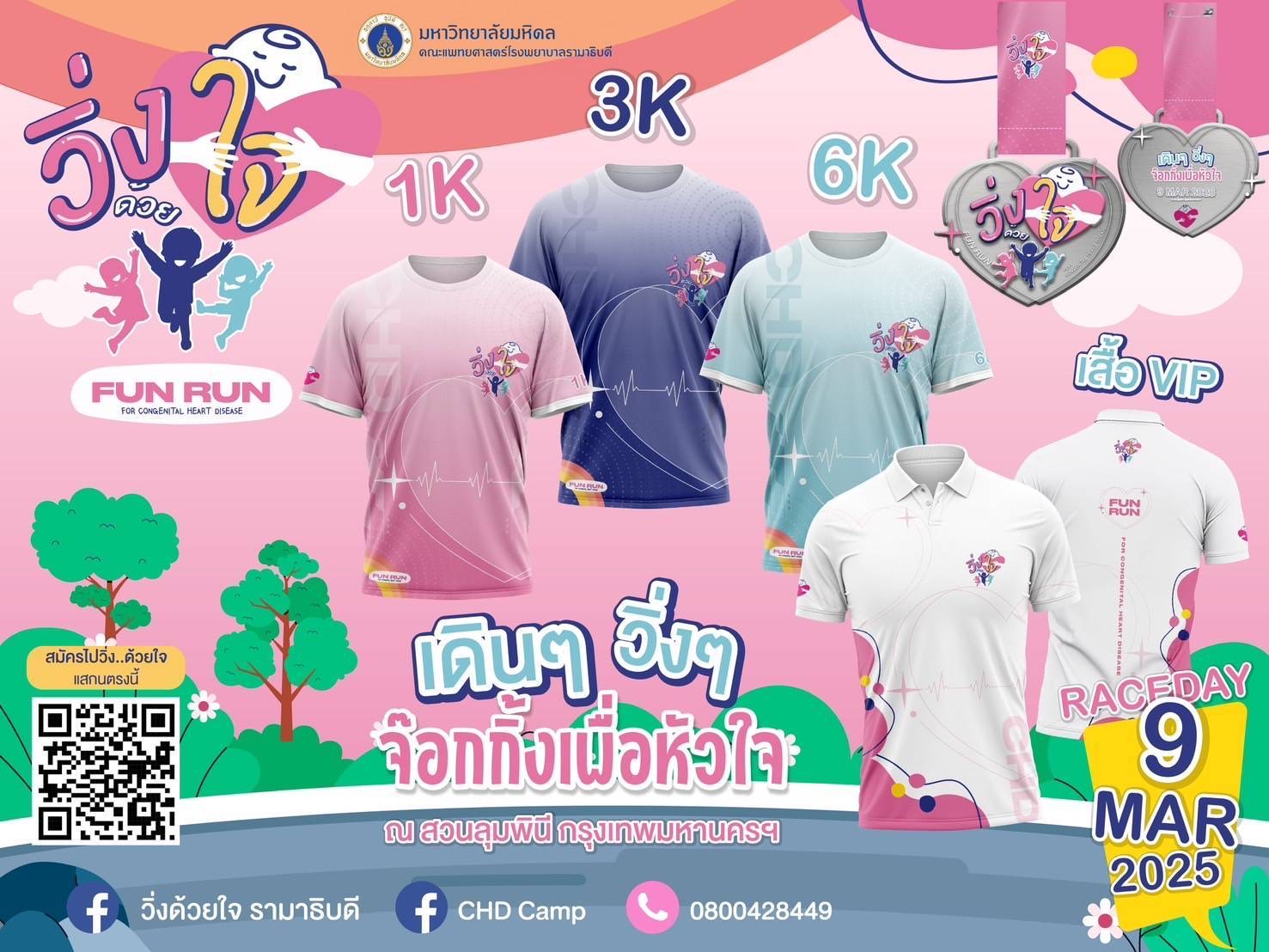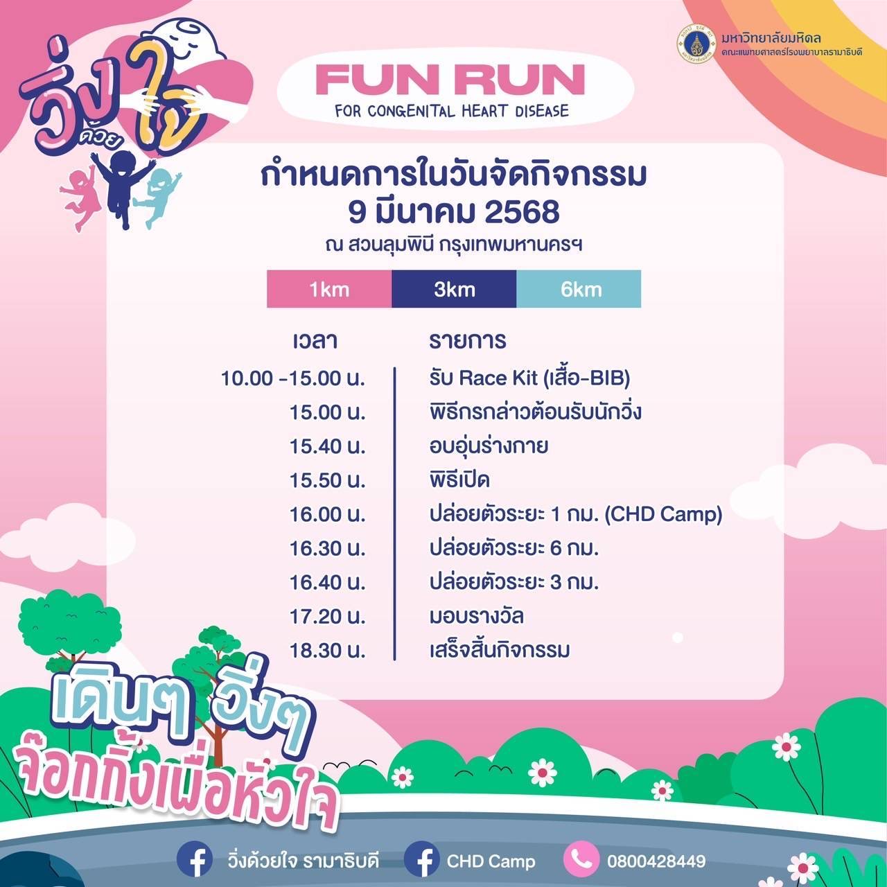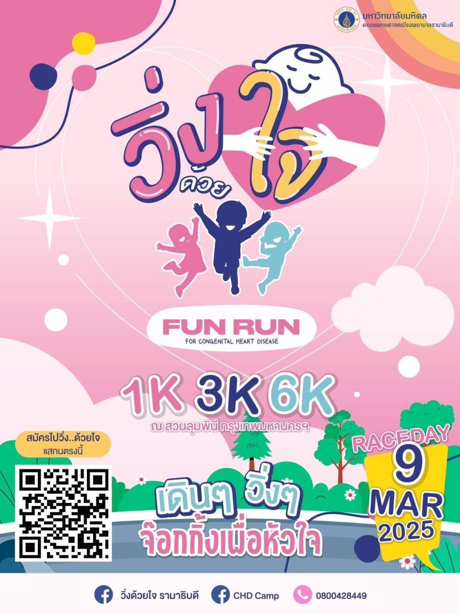 สาขาวิชาโรคหัวใจ ภาควิชากุมารเวชศาสตร์ คณะแพทยศาสตร์โรงพยาบาลรามาธิบดี ชวนร่วมงาน “วิ่ง…ด้วยใจ” ” FunRun For CongenitalHeart Disease “ ในวันที่ 9 มีนาคม 2568 ณ สวนลุมพินี