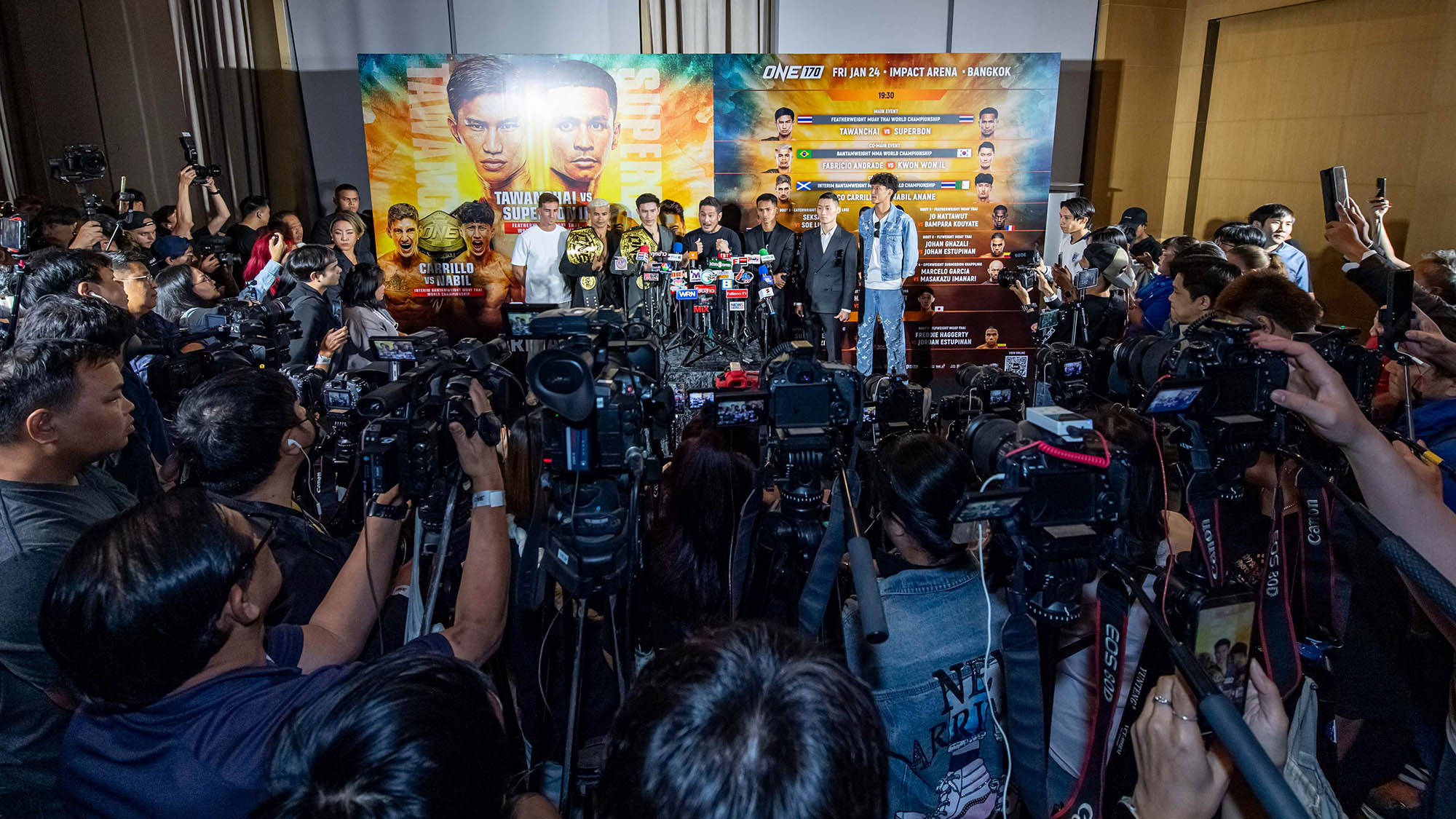 21 มกราคม 2568 โรงแรม แมริออท สุขุมวิท กรุงเทพ: วัน แชมเปียนชิพ (ONE) องค์กรศิลปะการต่อสู้ที่ยิ่งใหญ่ที่สุดในโลก แถลงข่าวจัดการแข่งขันศึก ONE 170 โดยมีทัพนักนักกีฬาและสื่อมวลชนหลายร้อยสำนัก รวมถึงแฟน ๆ เข้าร่วมงานมากมาย