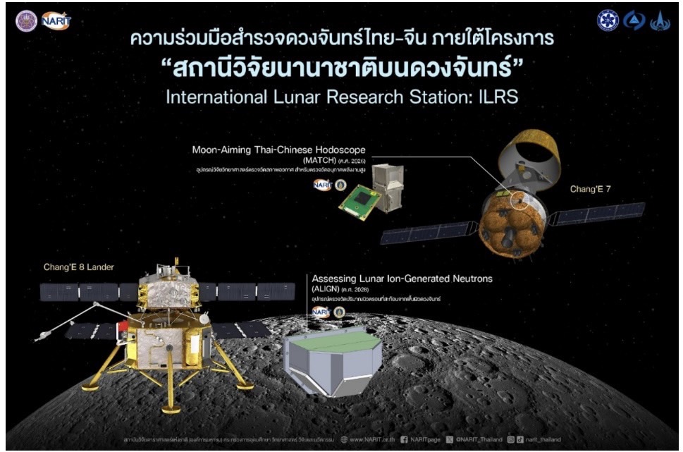 เมื่อวันที่ 4 ก.พ.น.ส.ศุภมาส อิศรภักดี รมว.การอุดมศึกษา วิทยาศาสตร์ วิจัยและนวัตกรรม (อว.) เปิดเผยหลังประชุมคณะรัฐมนตรี(ครม.) ว่า ที่ประชุม ครม.มีมติเห็นชอบการลงนามบันทึกความเข้าใจระหว่างกระทรวง อว.แห่งราชอาณาจักรไทยกับองค์การบริหารอวกาศแห่งชาติจีน (China National Space Administration: CNSA) เพื่อร่วมกันวิจัยและพัฒนา “อุปกรณ์ตรวจวัดสภาพอวกาศ” (Moon Aiming Thai-Chinese Hodoscope – MATCH) ที่จะร่วมติดตั้งไปกับยานสำรวจอวกาศฉางเอ๋อ 7 สำหรับสำรวจสภาพอวกาศโดยรอบของดวงจันทร์ ภายใต้โครงการสถานีวิจัยนานาชาติบนดวงจันทร์ (International Lunar Research Station: ILRS) ตามที่กระทรวง อว.โดยสถาบันวิจัยดาราศาสตร์แห่งชาติ(องค์การมหาชน) (สดร. หรือ NARIT) และมหาวิทยาลัยมหิดล นำเสนอ