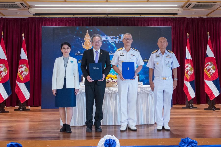(5 กุมภาพันธ์ 2568) ณ ห้องวุฒิไชยเฉลิมลาภ อาคารราชนาวิกสภา กรุงเทพฯ - กระทรวงการอุดมศึกษา วิทยาศาสตร์ วิจัยและนวัตกรรม (อว.) สำนักงานพัฒนาวิทยาศาสตร์และเทคโนโลยีแห่งชาติ (สวทช.) โดยศูนย์พันธุวิศวกรรมและเทคโนโลยีชีวภาพแห่งชาติ (ไบโอเทค) ร่วมกับ กองทัพเรือ โดยกรมวิทยาศาสตร์ทหารเรือ ลงนามบันทึกความร่วมมือด้านการวิจัยและพัฒนาทางวิทยาศาสตร์และเทคโนโลยี โดยมีเป้าหมายหลักเพื่อพัฒนาเทคโนโลยีและนวัตกรรมในการกำจัดน้ำทิ้งที่มีน้ำมันเชื้อเพลิงและน้ำมันหล่อลื่นปนเปื้อน โดยการค้นหาและพัฒนาจุลินทรีย์ที่มีความสามารถในการย่อยสลายน้ำมันและสารประกอบน้ำมันปิโตรเลียม เพื่อใช้กำจัดน้ำเสียจากเรือและพื้นที่ของกองทัพเรือ รวมถึงสร้างองค์ความรู้ที่มีศักยภาพผ่านการพัฒนาผลิตภัณฑ์ที่เป็นมิตรต่อสิ่งแวดล้อม และส่งเสริมให้หน่วยงานในกองทัพเรือนำไปใช้ประโยชน์ สนับสนุนนโยบายกองทัพเรือที่เป็นมิตรกับสิ่งแวดล้อม (Green Navy) โดยมี พลเรือตรี กริช ขันธอุบล เจ้ากรมวิทยาศาสตร์ทหารเรือ และศาสตราจารย์ ดร.ชูกิจ ลิมปิจำนงค์ ผู้อำนวยการ สวทช. เป็นผู้ลงนาม พร้อมด้วยคณะผู้บริหารจากทั้งสองหน่วยงาน และนักวิจัยไบโอเทคกลุ่มวิจัยเทคโนโลยีไบโอรีไฟเนอรีและชีวภัณฑ์ ร่วมในงาน