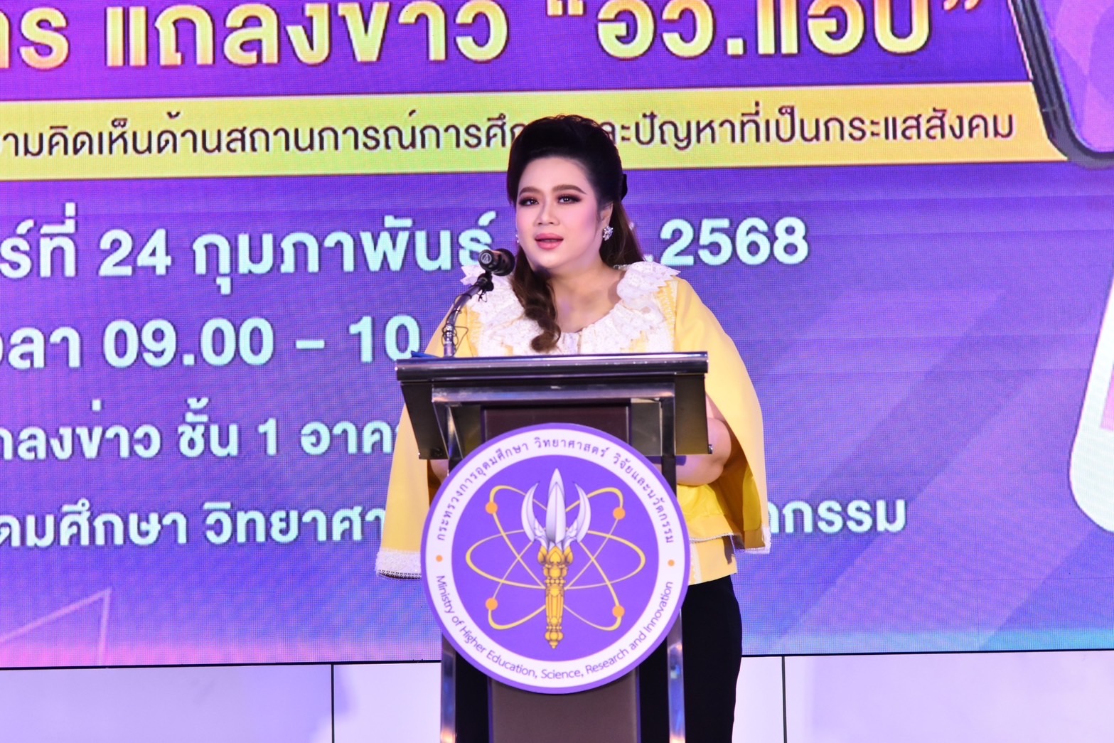 เมื่อวันที่ 24 ก.พ. น.ส.ศุภมาส อิศรภักดี รมว.การอุดมศึกษา วิทยาศาสตร์ วิจัยและนวัตกรรม (อว.) ได้เป็นประธานการแถลงข่าว ”เปิดตัว อว.แอป” แอปพลิเคชันในระดับกระทรวง ที่ถือเป็นแหล่งรวมข้อมูล และมีฐานข้อมูลจำนวนมาก ที่นำไปใช้ประโยชน์ในการส่งเสริมสนับสนุน และพัฒนาการจัดการความรู้เพื่อการสร้างศักยภาพความยั่งยืนของนิสิต นักศึกษาในสถาบันอุดมศึกษา คณาจารย์ ผู้ปกครอง ผู้ประกอบการ และประชาชนทั่วไป โดยมี ศ.ดร.ศุภชัย ปทุมนากุล ปลัดกระทรวง อว. รศ.ดร.ยศชนัน วงศ์สวัสดิ์ รองอธิการบดีมหาวิทยาลัยมหิดล รศ.ดร.สุณีย์ กัลยะจิตร อาจารย์คณะสังคมศาสตร์และมนุษยศาสตร์ มหาวิทยาลัยมหิดล หัวหน้าโครงการสร้าง อว.แอป และ อว.โพล เข้าร่วม ที่ห้องแถลงข่าว ชั้น 1 อาคารพระจอมเกล้า สำนักงานกระทรวง อว. (โยธี)