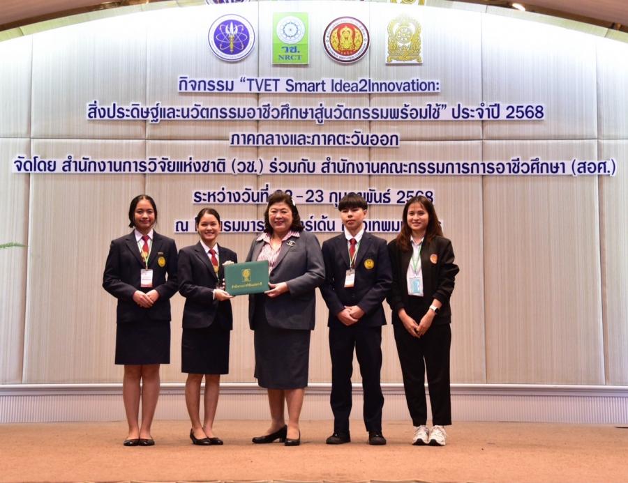 ทั้งนี้ กิจกรรมนี้ไม่เพียงเป็นเวทีสำหรับการนำเสนอผลงานเท่านั้น แต่ยังเป็นโอกาสในการแลกเปลี่ยนความรู้ จุดประกายไอเดีย และสร้างแรงบันดาลใจให้กับนักศึกษาในการพัฒนาตนเองและสร้างผลงานที่เป็นประโยชน์ต่อสังคม วช. และ สอศ. มั่นใจว่าผลงานที่เกิดขึ้นในวันนี้จะเป็นจุดเริ่มต้นของการพัฒนาไปสู่การใช้งานจริง และเป็นกลไกสำคัญในการขับเคลื่อนเศรษฐกิจและสังคมของประเทศ และพร้อมสนับสนุนบุคลากรสายอาชีวศึกษาในการสร้างสรรค์นวัตกรรมที่มีคุณค่าและเป็นประโยชน์ต่อส่วนรวม