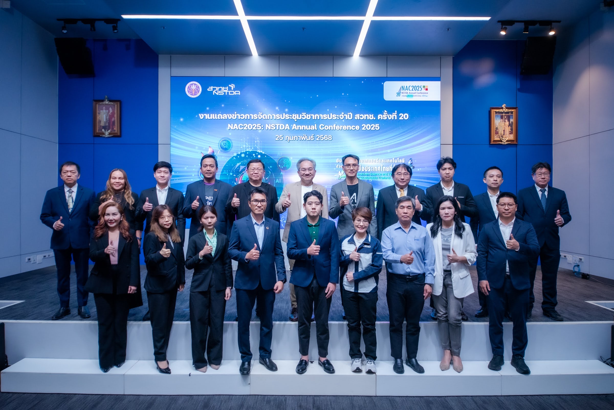 (25 กุมภาพันธ์ 2568) ณ ห้องแถลงข่าว ชั้น 1 อาคารพระจอมเกล้ากระทรวงการอุดมศึกษา วิทยาศาสตร์ วิจัยและนวัตกรรม (อว.):ศาสตราจารย์ ดร.ชูกิจ ลิมปิจำนงค์ ผู้อำนวยการสำนักงานพัฒนาวิทยาศาสตร์และเทคโนโลยีแห่งชาติ (สวทช.) ดร.ชัย วุฒิวิวัฒน์ชัย ผู้อำนวยการศูนย์เทคโนโลยีอิเล็กทรอนิกส์และคอมพิวเตอร์แห่งชาติ (เนคเทค) พร้อมด้วยทีมนักวิจัย สวทช. ภายใต้กระทรวง อว. และหน่วยงานพันธมิตร ร่วมงานแถลงข่าวการจัดการประชุมวิชาการประจำปี สวทช. ครั้งที่ 20 (20th NSTDA Annual Conference: NAC2025) ภายใต้แนวคิด “ขับเคลื่อนวิทยาศาสตร์และเทคโนโลยีด้วย AI เพื่อประเทศไทยที่ยั่งยืน: AI-driven Science and Technology for Sustainable Thailand” ซึ่งจะจัดขึ้นระหว่างวันที่ 26-28 มีนาคม 2568 ที่อุทยานวิทยาศาสตร์ประเทศไทย อ.คลองหลวง จ.ปทุมธานี