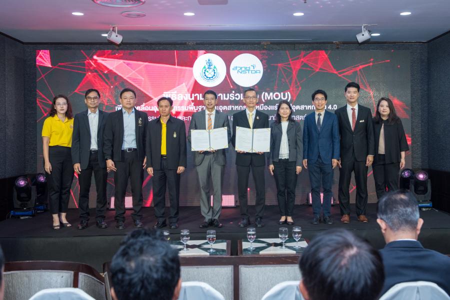 สำนักงานพัฒนาวิทยาศาสตร์และเทคโนโลยีแห่งชาติ (สวทช.) และกรมอุตสาหกรรมพื้นฐานและการเหมืองแร่ (กพร.) ลงนามความร่วมมือ (MOU) เพื่อขยายผลและผลักดันการขับเคลื่อนอุตสาหกรรมพื้นฐานและอุตสาหกรรมเหมืองแร่ไทยสู่อุตสาหกรรม 4.0 พร้อมเผยผลสำเร็จการพัฒนาและยกระดับผู้ประกอบการประยุกต์ใช้เทคโนโลยี 4.0 เพื่อเพิ่มประสิทธิภาพและลดต้นทุน ตอบรับนโยบาย MIND ของ อก. โดยเฉพาะมิติที่ 1 “ความสำเร็จทางธุรกิจ” ซึ่งเน้นการยกระดับเทคโนโลยีสู่การผลิตสมัยใหม่ด้วยเทคโนโลยี 4.0