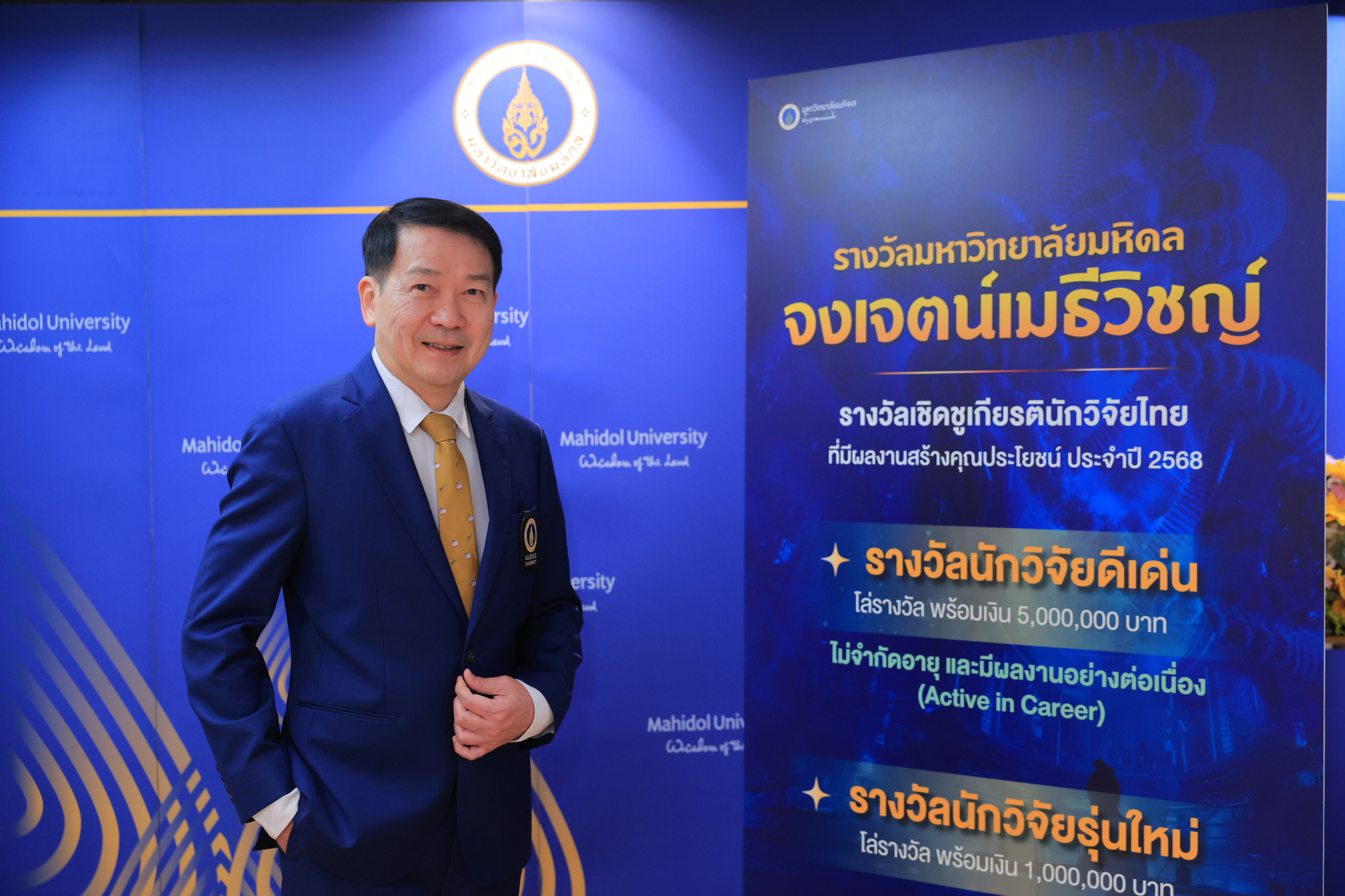 มหาวิทยาลัยมหิดล ชูวงการวิจัยไทย! เปิดตัวรางวัลมหาวิทยาลัยมหิดล จงเจตน์เมธีวิชญ์ เฟ้นหานักวิจัยคุณภาพ ร่วมขับเคลื่อนผลกระทบเชิงบวกสู่สังคม พร้อมมอบรางวัลสนับสนุนสูงสุด 5 ล้านบาท