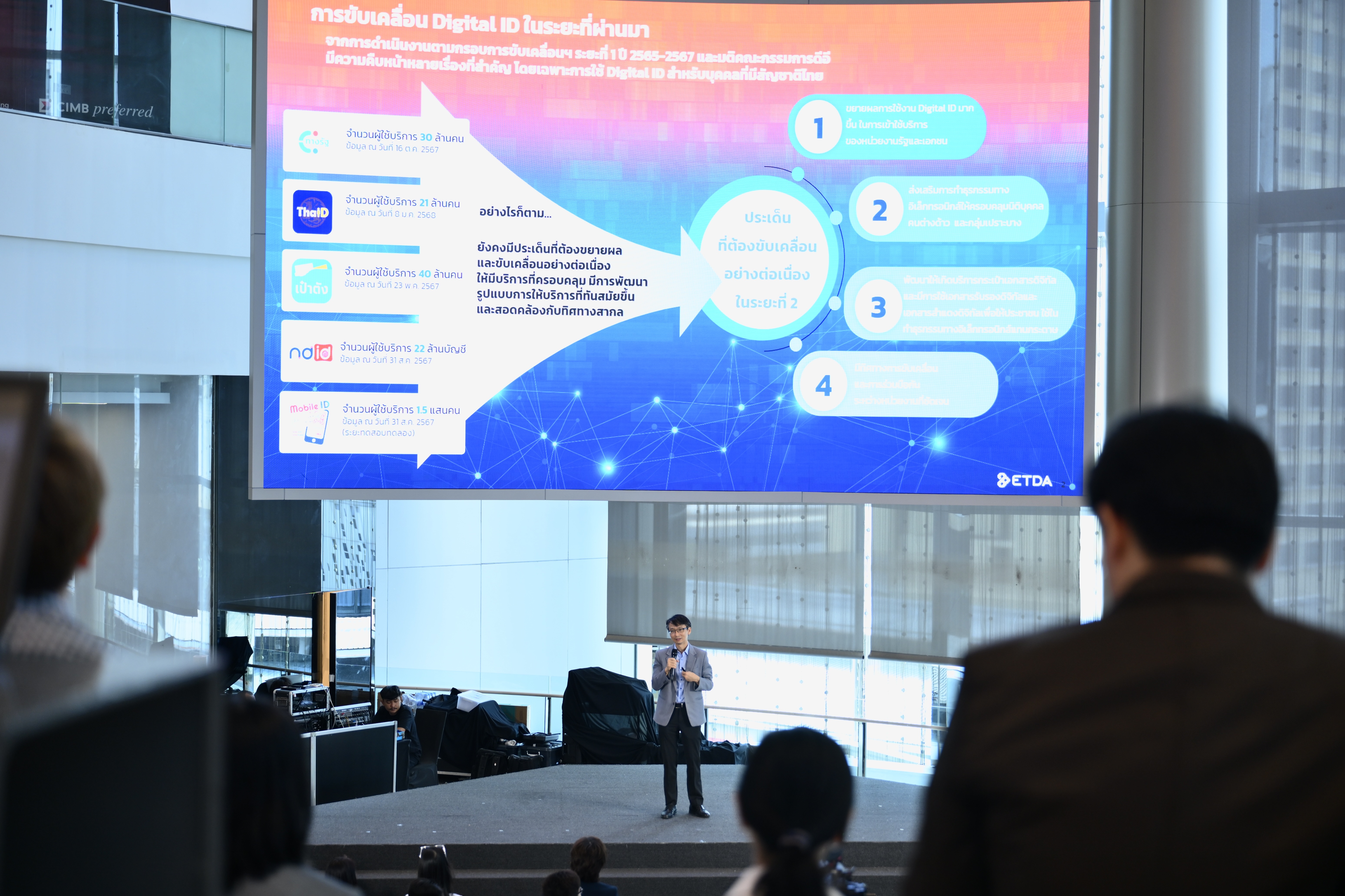 ดร.ชัยชนะ มิตรพันธ์ ผู้อำนวยการ ETDA เปิดเผยว่า ”ETDA มุ่งมั่นผลักดัน Digital ID หรือการพิสูจน์และยืนยันตัวตนทางดิจิทัล สู่การเป็นโครงสร้างพื้นฐานสำคัญในการขับเคลื่อนเศรษฐกิจและสังคมดิจิทัลของประเทศ เพื่อสร้างความเชื่อมั่นและความมั่นใจให้กับทุกธุรกรรมออนไลน์ที่ทุกคนเข้าถึงได้” โดยที่ผ่านมา ETDA ได้ดำเนินการภายใต้กรอบการขับเคลื่อน Digital ID ระยะที่ 1 (พ.ศ. 2565 - 2567) ซึ่งได้สร้างรากฐานสำคัญหลายด้าน ไม่ว่าจะเป็นการเพิ่มจำนวนผู้ใช้งาน Digital ID ในประเทศไทยอย่างต่อเนื่อง ผ่านบริการ ThaID (ไทยดี) ของกรมการปกครองที่เป็น Digital ID หลักของบุคคลธรรมดาสำหรับการทำธุรกรรมออนไลน์กับภาครัฐ รวมถึงการพัฒนาระบบพิสูจน์และยืนยันตัวตนด้วยใบหน้าทางดิจิทัล (Face Verification Service: FVS) ที่ช่วยยกระดับความปลอดภัยของการยืนยันตัวตนผ่านข้อมูลชีวมิติ เป็นต้น