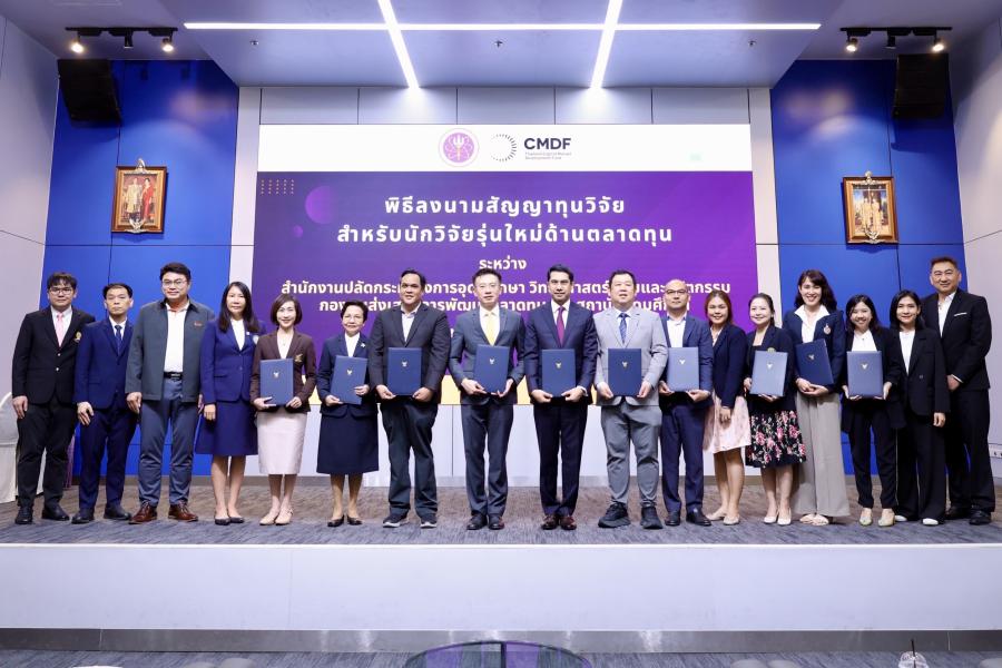 สำนักงานปลัดกระทรวง อว.จับมือกองทุน CMDF ลงนามสัญญาทุนวิจัยสำหรับนักวิจัยรุ่นใหม่ด้านตลาดทุนตอบโจทย์รัฐบาลที่ต้องการให้ประเทศไทยเป็นฮับหรือศูนย์กลางด้านตลาดทุน พร้อมเปิดตัว 10 นักวิจัยรุ่นใหม่ด้านตลาดทุน