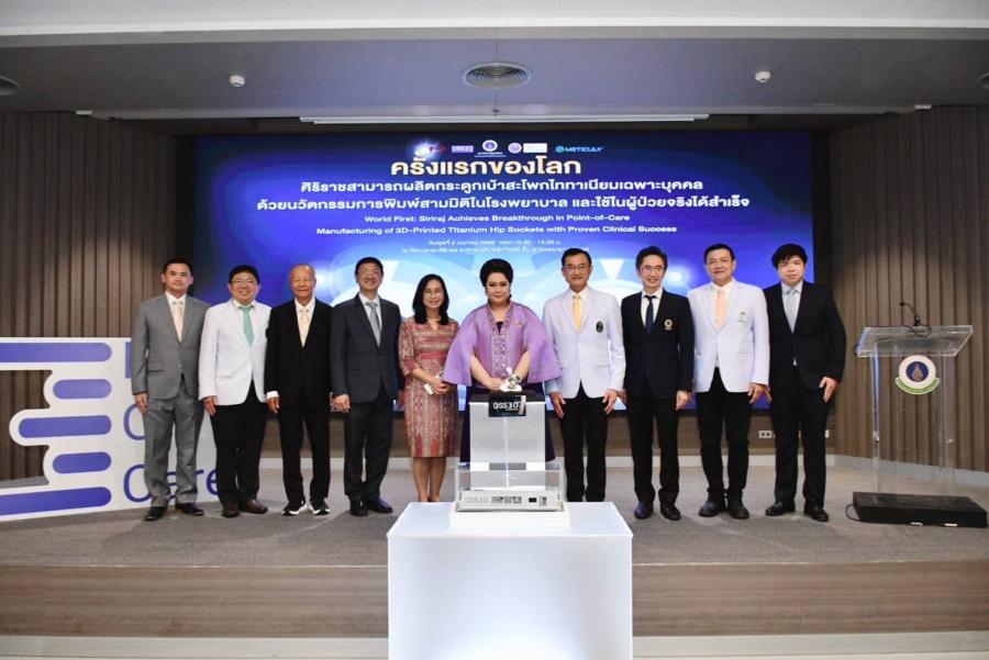ตอกย้ำความสำเร็จในการผลักดันงานวิจัยสู่การใช้ประโยชน์จริงเชิงพาณิชย์ เพิ่มขีดความสามารถการแข่งขันของประเทศ หน่วยบริหารและจัดการทุนด้านการเพิ่มความสามารถในการแข่งขันของประเทศ (บพข.) ภายใต้กระทรวงการอุดมศึกษา วิทยาศาสตร์ วิจัยและนวัตกรรม (อว.) เผยความสำเร็จครั้งสำคัญของวงการแพทย์ไทย สามารถผลิตกระดูกเบ้าสะโพกไทเทเนียมเฉพาะบุคคล ด้วยนวัตกรรมการพิมพ์สามมิติในโรงพยาบาล และใช้ในผู้ป่วยจริงได้สำเร็จเป็นเจ้าแรกของโลก (World First: Siriraj Achieves Breakthrough in Point-of-Care Manufacturing of 3D-Printed Titanium Hip Sockets with Proven Clinical Success) เพื่อยกระดับคุณภาพชีวิตของคนไทยและเพิ่มขีดความสามารถในการแข่งขันของประเทศ
