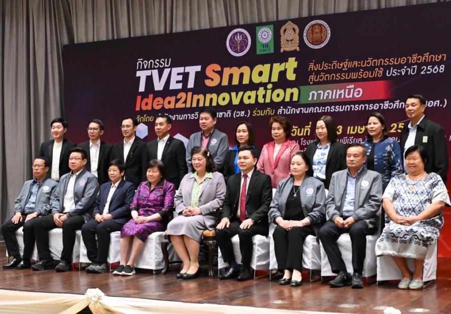 วันที่ 2 เมษายน 2568 สำนักงานการวิจัยแห่งชาติ (วช.) กระทรวงการอุดมศึกษา วิทยาศาสตร์ วิจัยและนวัตกรรม ร่วมกับ สำนักงานคณะกรรมการการอาชีวศึกษา จัดกิจกรรม “TVET Smart Idea2Innovation : สิ่งประดิษฐ์และนวัตกรรมอาชีวศึกษาสู่นวัตกรรมพร้อมใช้” ประจำปี 2568 ครั้งที่ 4 ภาคเหนือ โดย ดร.วิภารัตน์ ดีอ่อง ผู้อำนวยการสำนักงานการวิจัยแห่งชาติ ให้เกียรติเป็นประธานในพิธีเปิด และปาฐกถาพิเศษเรื่อง “TVET Smart Idea2Innovation : บ่มเพาะ เสริมแกร่ง พัฒนาบุคลากรอาชีวศึกษา สู่นวัตกรรมพร้อมใช้” พร้อมด้วย ดร.นิรุตต์ บุตรแสนลี รองศึกษาธิการภาค สำนักงานศึกษาธิการภาค 15 สำนักงานปลัดกระทรวงศึกษาธิการ กล่าวบรรยายพิเศษ เรื่อง “ปลดล็อกศักยภาพ สร้างชาติด้วยนวัตกรรม : บทบาทของอาชีวศึกษาในการขับเคลื่อน TVET Smart Idea2Innovation” ณ โรงแรม ดิ อิมพีเรียล โฮเทล แอนด์ คอนเวนชั่น เซ็นเตอร์ จังหวัดพิษณุโลก