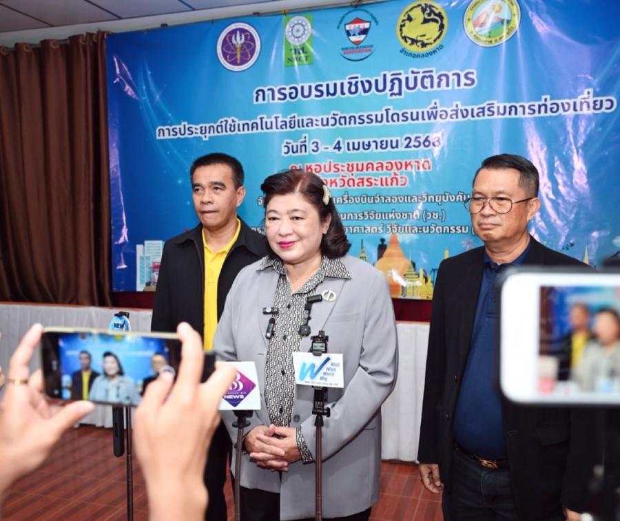 นายชยพล อินทรสุภา นายอำเภอคลองหาด กล่าวว่า โครงการฝึกอบรมครั้งนี้ได้รับการสนับสนุนจากสำนักงานการวิจัยแห่งชาติ(วช.) และสมาคมกีฬาเครื่องบินจำลองและวิทยุบังคับ ซึ่งนับเป็นโอกาสสำคัญในการเสริมสร้างองค์ความรู้ด้านเทคโนโลยีการบินโดรน เพื่อใช้ในการส่งเสริมการท่องเที่ยวของจังหวัดสระแก้ว จังหวัดสระแก้วเป็นหนึ่งในจังหวัดเมืองรองที่มีศักยภาพด้านการท่องเที่ยว การอบรมทักษะการบินโดรนในครั้งนี้จะช่วยยกระดับความสามารถทางเทคโนโลยีของผู้เข้าร่วม พร้อมทั้งส่งเสริมการเติบโตของเศรษฐกิจท้องถิ่นอย่างยั่งยืน ผู้ที่ผ่านการฝึกอบรมจะสามารถนำความรู้ที่ได้รับไปต่อยอดในการพัฒนาอาชีพในอนาคต อีกทั้งยังมีส่วนร่วมในการส่งเสริมและพัฒนาแหล่งท่องเที่ยวของจังหวัดสระแก้วให้เป็นที่รู้จักในวงกว้างมากยิ่งขึ้น