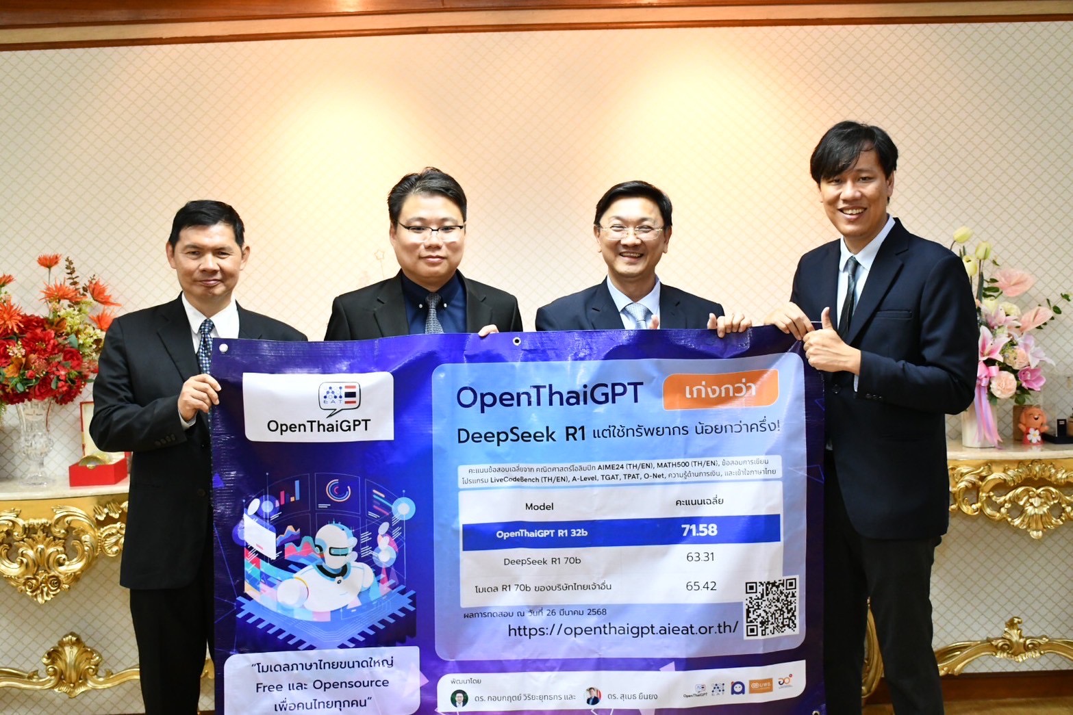 เมื่อวันที่ 4 เม.ย.68 น.ส.ศุภมาส อิศรภักดี รมว.การอุดมศึกษา วิทยาศาสตร์ วิจัยและนวัตกรรม (อว.) ร่วมหารือกับทีม “OpenThaiGPT R1” ถึงผลสำเร็จโครงการ “OpenThaiGPT R1” โมเดล AI ภาษาไทยขนาดใหญ่ ที่มีความสามารถโดดเด่นด้านการวิเคราะห์และคิดเชิงเหตุผล (Reasoning) เทียบชั้นโมเดลระดับโลก แต่ใช้ทรัพยากรน้อยกว่า นำทีมโดย ดร.กอบกฤตย์ วิริยะยุทธกร และ ดร.สุเมธ ยืนยง จากสมาคมผู้ประกอบการปัญญาประดิษฐ์ประเทศไทย (AIEAT) และ บริษัท ไอแอพพ์เทคโนโลยี จำกัด (iApp Technology) ซึ่งได้รับทุนวิจัยสนับสนุนจากหน่วยบริหารและจัดการทุนด้านการเพิ่มความสามารถในการแข่งขันของประเทศ (บพข.) กองทุนส่งเสริมวิทยาศาสตร์ วิจัยและนวัตกรรม โดยมี ดร.พันธุ์เพิ่มศักดิ์ อารุณี รักษาการในตำแหน่งที่ปรึกษาด้านการพัฒนาอุดมศึกษา วิทยาศาสตร์ วิจัยและนวัตกรรม รศ.ดร.ธงชัย สุวรรณสิชณน์ ผู้อำนวยการ บพข. และ ผศ.ดร.ประมา ศาสตระรุจิ รักษาการผู้อำนวยการสำนักบริหารเทคโนโลยีสารสนเทศเพื่อพัฒนาการศึกษา (สบทศ.) เข้าร่วม ที่ห้องประชุมรัฐมนตรี ชั้น 2 อาคารพระจอมเกล้า สำนักงานปลัดกระทรวง อว. (โยธี)