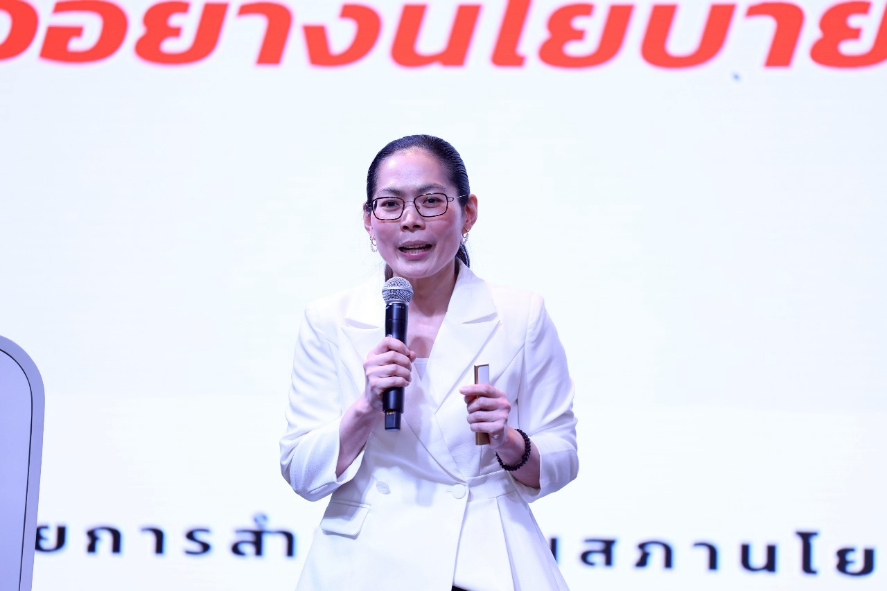 ด้าน ดร.สิริพร พิทยโสภณ รองผู้อำนวยการ สอวช. ได้ร่วมบรรยาย เรื่อง “ประเด็นท้าทายในการพัฒนาประเทศไทยด้วย อววน.” ในมุมของตัวอย่างนโยบาย โดยได้กล่าวถึงกรอบแนวคิดการออกแบบนโยบาย อววน. ที่มุ่งเน้นทั้งด้านเศรษฐกิจนวัตกรรม เศรษฐกิจฐานราก และเศรษฐกิจสีเขียว ซึ่งเมื่อรวมกันแล้วจะนำไปสู่เศรษฐกิจที่เติบโตอย่างมีดุลยภาพ แนวทางการขับเคลื่อนเริ่มตั้งแต่การสร้างผู้เล่นหลัก (Key player) ในระบบ ตัวอย่างการดำเนินการที่ สอวช. ทำอยู่ คือการเร่งเพิ่มจำนวนธุรกิจการฐานนวัตกรรม (Innovation-Driven Enterprise: IDE) เพื่อช่วยขับเคลื่อนเศรษฐกิจของประเทศ มีแนวคิดการจัดทำ E-Commercial and Innovation Platform (ECIP) เพื่อสนับสนุนผู้ประกอบการในการต่อยอดการพัฒนาสินค้าสู่ตลาดได้จริง มีกลไก University Holding Company ให้มหาวิทยาลัยหรือสถาบันวิจัยของรัฐสามารถร่วมลงทุนกับเอกชนได้ และเกิดการนำผลงานวิจัยออกไปจัดตั้งเป็นธุรกิจ ในระดับชุมชน มีการสร้างเครือข่ายธุรกิจชุมชน ผ่านกลไก Social Integrated Enterprise (SIE) เป็นกลไกกลางในการสร้างและยกระดับเครือข่ายธุรกิจชุมชนให้เกิดการจัดการบริหารธุรกิจชุมชนร่วมตลอดห่วงโซ่คุณค่า นอกจากนี้ยังมีกลไกการนำ อววน. เข้าไปเพิ่มศักยภาพจังหวัด การสร้างระบบนิเวศที่เอื้อต่อการพัฒนาอุตสาหกรรมและพื้นที่ มีการส่งเสริมอุตสาหกรรมอาหารอนาคต (Future food) โดยมีแนวทางขับเคลื่อนยกระดับผู้ประกอบการและดึงดูดการลงทุน สร้างกลุ่มวิจัยและพัฒนา รวมถึงสร้างระบบมาตรฐานเพื่อพัฒนาตลาด