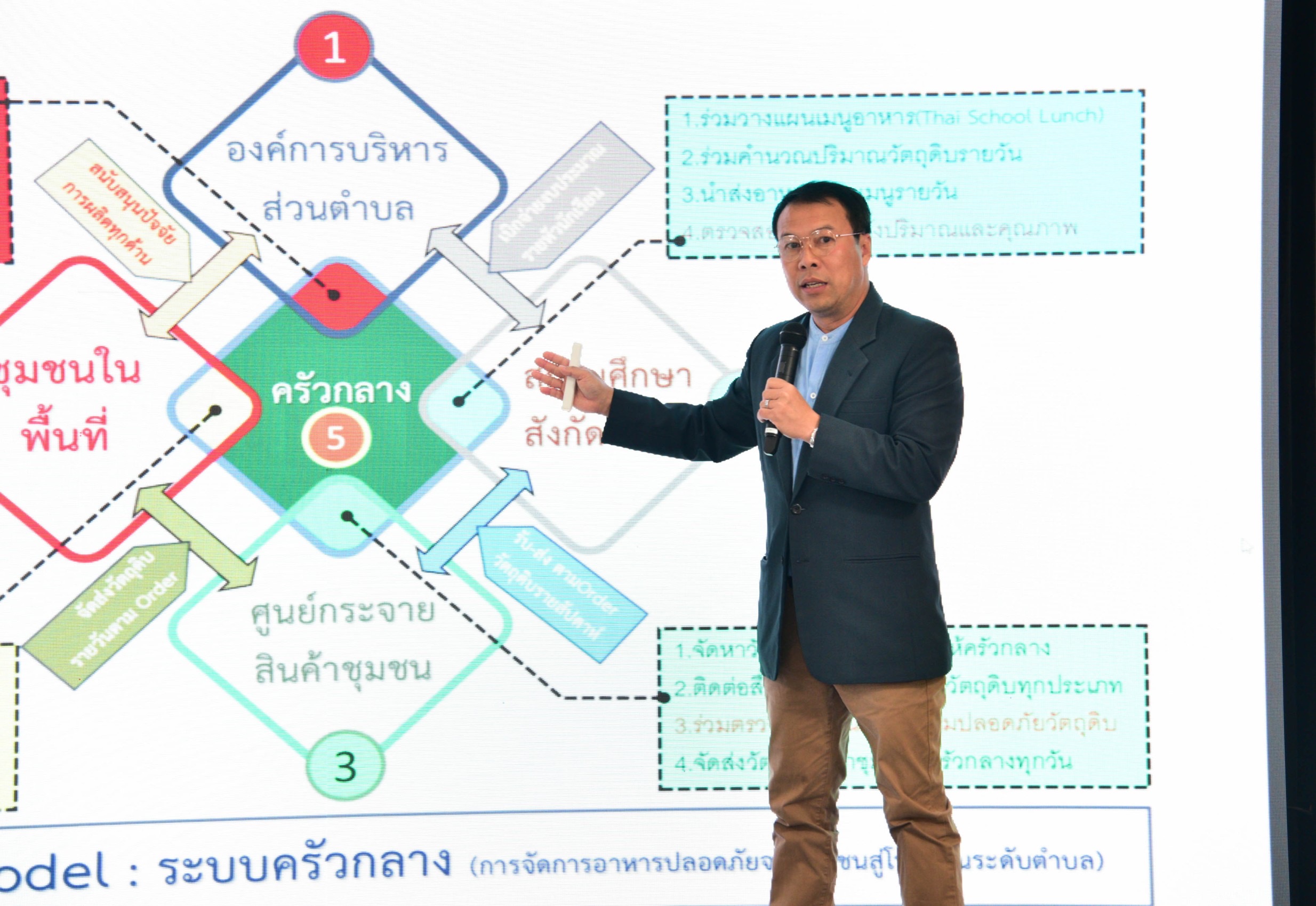 ดร.วิภารัตน์ ดีอ่อง กล่าวว่า สำนักงานการวิจัยแห่งชาติได้สนับสนุนการดำเนินงานโครงการ Genius Lunch ซึ่งเป็นกลไกที่ออกแบบเพื่อตอบโจทย์เป้าหมายการพัฒนาที่ยั่งยืนขององค์การสหประชาชาติ (SDGs) ได้แก่ SDG 2: ขจัดความหิวโหย SDG 3: การมีสุขภาพและความเป็นอยู่ที่ดี SDG 4: การศึกษาที่มีคุณภาพ และ SDG 10: การลดความเหลื่อมล้ำ โดยโครงการนี้ ได้รับความร่วมมือจากมหาวิทยาลัยราชภัฏบุรีรัมย์ในการสร้างต้นแบบระบบการจัดการอาหารกลางวันที่ระดับตำบล โดยได้รับการสนับสนุนด้านวัตถุดิบและแรงงานจากชุมชน ซึ่งเป็นการสร้างการเรียนรู้ร่วมกันระหว่างโรงเรียนและชุมชนในการบริโภคอาหารที่ดีและยั่งยืน