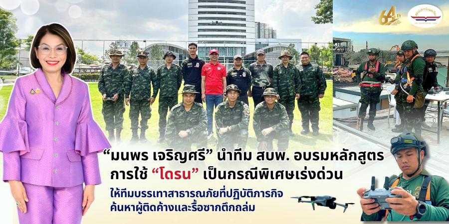 “มนพร” นำทีม สบพ. อบรมหลักสูตรการใช้โดรนเป็นกรณีพิเศษเร่งด่วน ให้ทีมบรรเทาสาธารณภัยที่ปฏิบัติภารกิจค้นหาผู้ติดค้างและรื้อซากตึกถล่ม