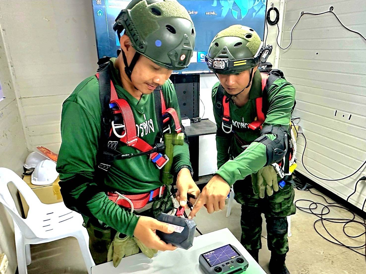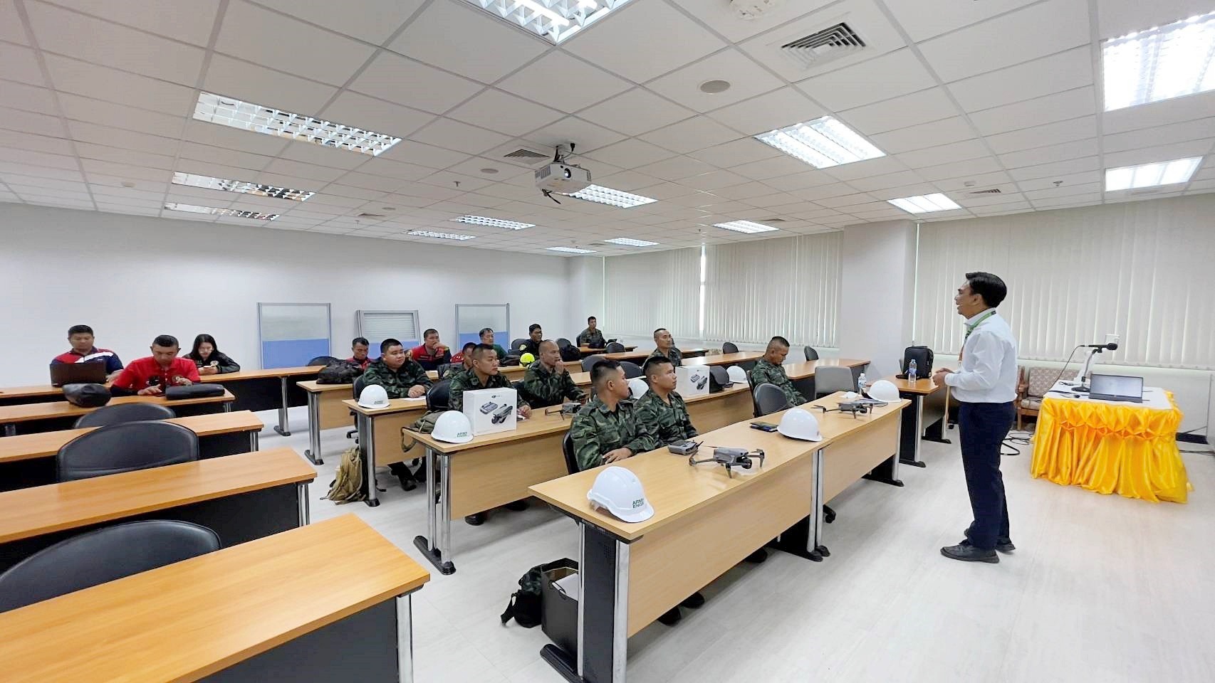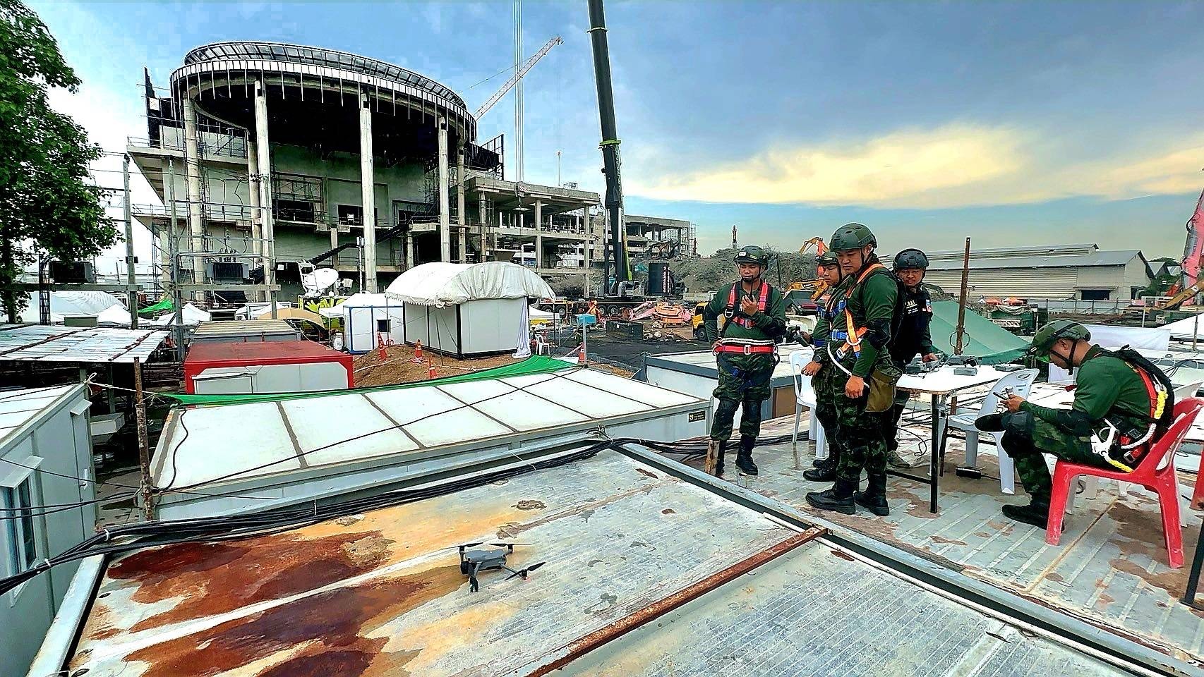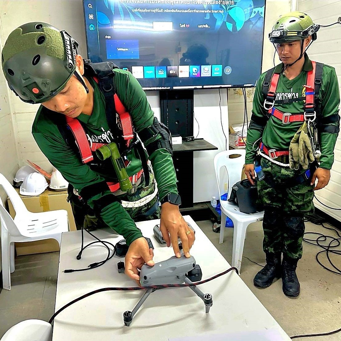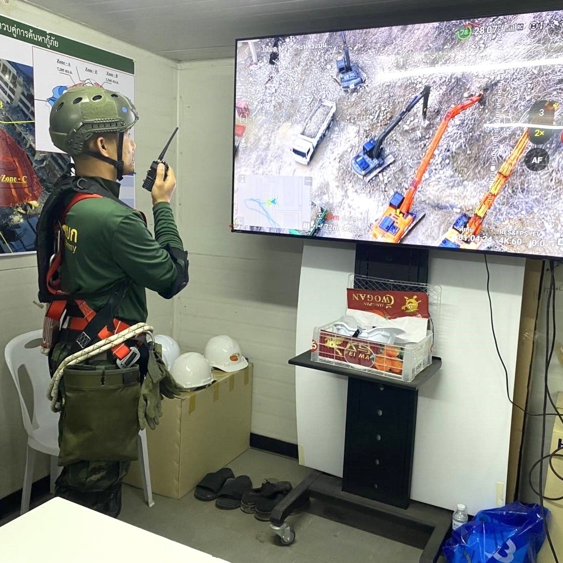 นางมนพร กล่าวเพิ่มเติมว่า สำหรับในภารกิจสำคัญในการเร่งค้นหาผู้ติดค้างและรื้อซากจากเหตุการณ์อาคารสำนักงานตรวจเงินแผ่นดินถล่ม จากเหตุการณ์แผ่นดินไหวครั้งนี้ สบพ. ได้มีส่วนร่วมในการผลักดันให้ผู้เข้ารับการฝึกอบรมได้รับองค์ความรู้ที่จำเป็นต่อการปฏิบัติงานบังคับอากาศยานไร้คนขับ หรือ โดรน ทั้งภาคทฤษฎีและภาคปฏิบัติ เพื่อนำไปปฏิบัติหน้างานได้อย่างปลอดภัย ถูกต้องตามระเบียบข้อบังคับ และได้ผลลัพธ์ที่มีประสิทธิภาพ โดยเฉพาะในงานบรรเทาสาธารณภัย ที่โดรนถูกนำไปใช้ในการค้นหาและช่วยเหลือผู้ประสบภัยในสถานการณ์ฉุกเฉิน เช่น แผ่นดินไหว น้ำท่วม หรือเหตุการณ์สูญหายในพื้นที่ห่างไกล ซึ่งโดรนสามารถติดตั้งกล้องความร้อนและเซ็นเซอร์ตรวจจับการเคลื่อนไหว ทำให้ทีมกู้ภัยสามารถระบุตำแหน่งของผู้ประสบภัยได้อย่างรวดเร็ว
