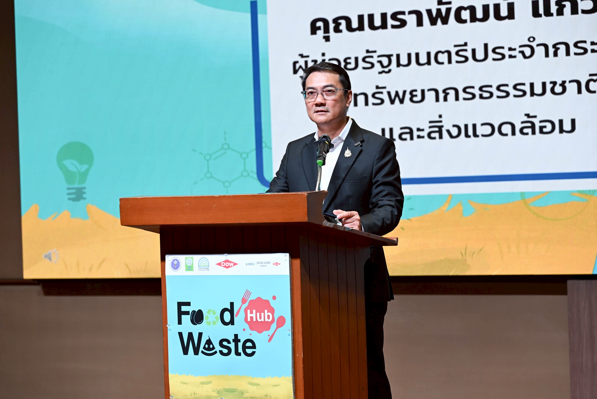 นายนราพัฒน์ แก้วทอง ผู้ช่วยรัฐมนตรีประจำกระทรวงทรัพยากรธรรมชาติและสิ่งแวดล้อม กล่าวว่า ปัญหาขยะอาหารมิได้เป็นเพียงประเด็นด้านของเสีย หากแต่สะท้อนถึงการสูญเสียทรัพยากรที่มีคุณค่า ผลกระทบต่อสิ่งแวดล้อม ตลอดจนโอกาสในการยกระดับคุณภาพชีวิตของประชาชนชาวไทย ความร่วมมือในครั้งนี้นับเป็นก้าวสำคัญในการบูรณาการองค์ความรู้ งานวิจัย และแนวทางปฏิบัติที่สามารถนำไปใช้ได้จริงในภาคส่วนต่าง ๆ ซึ่งสอดคล้องกับนโยบายของกระทรวงทรัพยากรธรรมชาติและสิ่งแวดล้อมในการขับเคลื่อนเศรษฐกิจหมุนเวียน การลดของเสีย และการสร้างสังคมที่ใช้ทรัพยากรอย่างมีประสิทธิภาพและยั่งยืน ทั้งนี้เชื่อว่า Food Waste Platform จะมีบทบาทเป็นศูนย์กลางในการส่งเสริมให้ประเทศไทยสามารถเปลี่ยนแปลงขยะอาหารจากภาระให้กลายเป็นโอกาสในการพัฒนาอย่างยั่งยืน