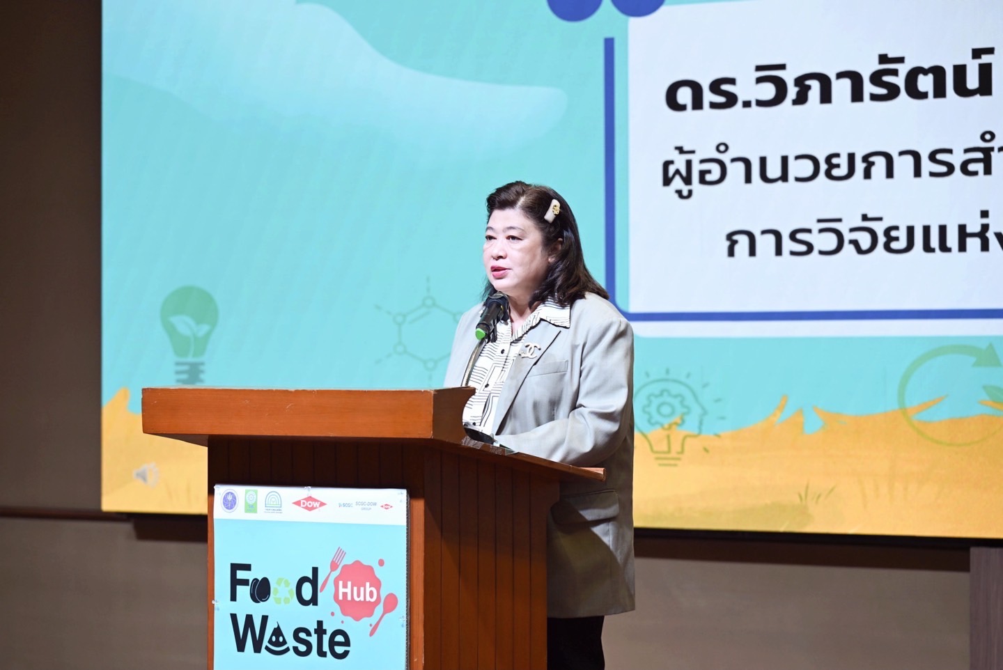ดร.วิภารัตน์ ดีอ่อง ผู้อำนวยการสำนักงานการวิจัยแห่งชาติ กล่าวว่า งานวิจัยเป็นกุญแจ สำคัญในการแก้ปัญหาขยะอาหารอย่างมีประสิทธิภาพและยั่งยืน วช. มุ่งสนับสนุนการพัฒนาความรู้ เทคโนโลยี และนวัตกรรมที่สามารถนำไปใช้ได้จริง ทั้งในเชิงนโยบายและการปฏิบัติ การจัดการขยะอาหารต้องอาศัยความร่วมมือจากทุกภาคส่วน และแพลตฟอร์มนี้เป็นตัวอย่างของการบูรณาการข้อมูล งานวิจัย และแนวปฏิบัติที่เป็นรูปธรรม เพื่อให้สาธารณชนสามารถนำไปใช้เป็นแนวทางในการลดขยะอาหาร และเพิ่มมูลค่าให้กับทรัพยากรอาหารของประเทศ งานวิจัยมุ่งเน้นการสร้างองค์ความรู้ และนำไปสู่การเปลี่ยนแปลงที่ยั่งยืน