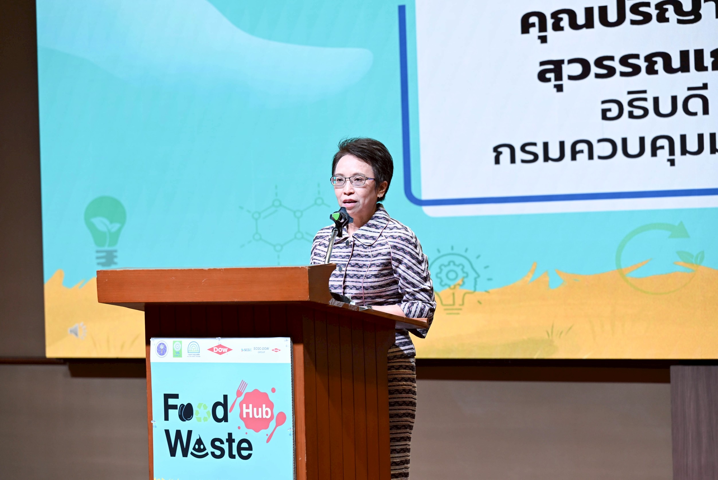 ด้าน นางสาวปรียาพร สุวรรณเกษ อธิบดีกรมควบคุมมลพิษ กล่าวว่า ปัญหาขยะอาหารเป็นความ ท้าทายสำคัญที่ส่งผลต่อสิ่งแวดล้อมและคุณภาพชีวิตของประชาชน กรมควบคุมมลพิษจึงมุ่งเน้นการผลักดัน แนวทางการจัดการขยะอาหารอย่างมีประสิทธิภาพ ตั้งแต่การป้องกันและลดปริมาณขยะจากต้นทาง การนำกลับมาใช้ประโยชน์ ตลอดจนถึงการกำจัดอย่างถูกต้องตามหลักวิชาการ ความรู้และข้อมูลที่ถูกต้องเป็นรากฐานสำคัญของการแก้ปัญหาอย่างยั่งยืน จึงให้ความสำคัญกับการพัฒนางานวิจัย ฐานข้อมูล และแนวทาง ปฏิบัติที่สามารถนำไปใช้ได้จริง เพื่อให้ทุกภาคส่วนสามารถนำไปปรับใช้และช่วยกันลดปริมาณขยะอาหาร ของประเทศได้อย่างเป็นรูปธรรม