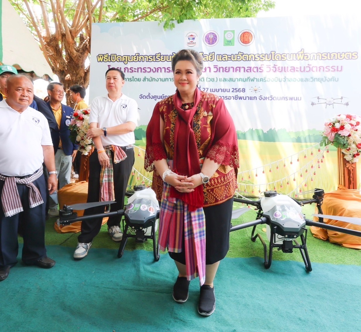 เมื่อวันอาทิตย์ที่ 27 เมษายน 2568 นางสาวศุภมาส อิศรภักดี รัฐมนตรีว่าการกระทรวงการอุดมศึกษา วิทยาศาสตร์ วิจัยและนวัตกรรม เป็นประธานในการเปิดศูนย์การเรียนรู้เทคโนโลยีและนวัตกรรมโดรนเพื่อการเกษตร ที่จัดตั้งขึ้น ณ วิทยาลัยการอาชีพนาแก จังหวัดนครพนม โดยมี นายศุภชัย ใจสมุทร ผู้ช่วยรัฐมนตรี อว.ศ.ดร.ศุภชัย ปทุมนากุล ปลัดกระทรวงอว. ดร.วิภารัตน์ ดีอ่อง ผู้อำนวยการสำนักงานการวิจัยแห่งชาติ ว่าที่ร้อยตรีพงษ์อนัน เปลี่ยนเอก ผู้อำนวยการวิทยาลัยการอาชีพนาแก และ นายพิศิษฐ์ มิตรเกื้อกูล นายกสมาคมกีฬาเครื่องบินจำลองและวิทยุบังคับ พร้อมด้วย ผู้บริหารในพื้นที่ จ.นครพนม ผู้ทรงคุณวุฒิของวช. ผู้นำเกษตรกรในพื้นที่ คณาจารย์และนักศึกษาของวิทยาลัยการอาชีพนาแก ให้การต้อนรับ และเข้าร่วมกิจกรรม