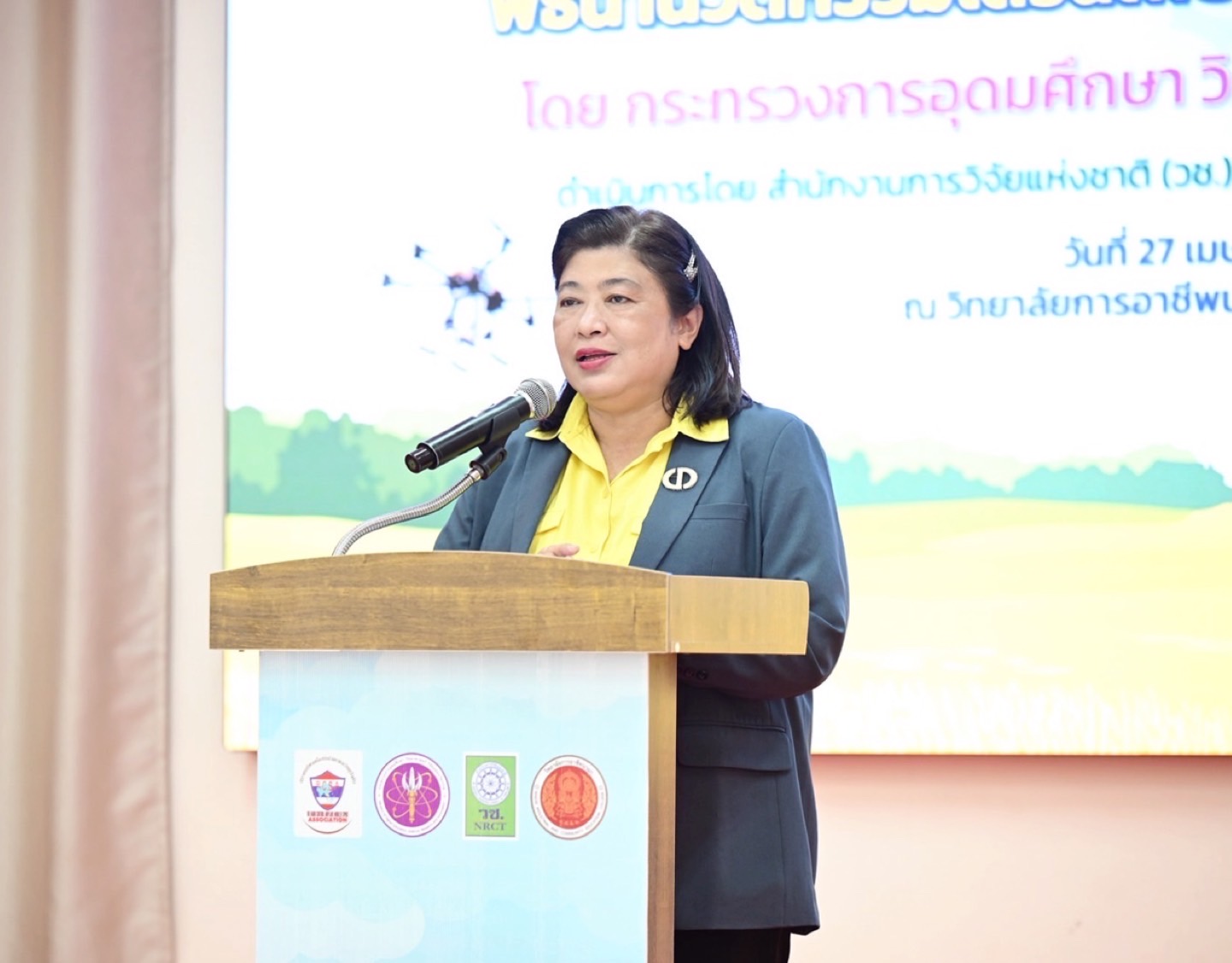 ดร.วิภารัตน์ ดีอ่อง ผู้อำนวยการสำนักงานการวิจัยแห่งชาติ กล่าวว่ากิจกรรมในครั้งนี้ ดำเนินการภายใต้โครงการ “พัฒนาสมรรถนะบุคลากรและเสริมศักยภาพของพื้นที่โดยศูนย์การเรียนรู้เทคโนโลยีโดรน” ซึ่ง วช. มุ่งหวังให้ศูนย์ที่จัดตั้งขึ้น เป็นแหล่งถ่ายทอดความรู้และเสริมสร้างทักษะด้านเทคโนโลยีให้กับเกษตรกร นักศึกษาและบุคลากรในพื้นที่ ที่ช่วยส่งเสริมภาคการเกษตร เพื่อช่วยยกระดับการเกษตรของไทยให้ทันสมัยยิ่งขึ้น โดยการใช้โดรนเป็นนวัตกรรมในการเพิ่มผลผลิต ลดต้นทุน และสร้างความมั่นคงทางการเกษตร รวมถึงสร้างโอกาสในการเพิ่มคุณภาพผลผลิตทางการเกษตร