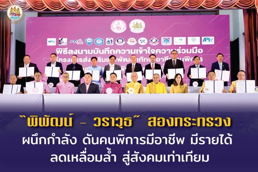 นายพิพัฒน์ รัชกิจประการ รัฐมนตรีว่าการกระทรวงแรงงาน กล่าวว่า ภายใต้วิสัยทัศน์ของรัฐบาล นางสาวแพทองธาร ชินวัตร ที่ให้ความสำคัญกับการพัฒนาทุนมนุษย์อย่างทั่วถึง การจับมือระหว่างสองกระทรวงครั้งนี้จึงเป็นก้าวสำคัญในการลดความเหลื่อมล้ำ สร้างโอกาสให้คนพิการมีอาชีพ มีรายได้ และใช้ชีวิตได้อย่างมีศักดิ์ศรีในสังคม ซึ่งประเทศไทยมีคนพิการในวัยแรงงานราว 800000 คน ซึ่งจำนวนมากยังขาดโอกาสในการเข้าถึงการฝึกอาชีพ กระทรวงแรงงานจึงร่วมมือกับกระทรวงการพัฒนาสังคมและความมั่นคงของมนุษย์ และเครือข่ายฝีมือแรงงานทั่วประเทศ จัดหลักสูตรฝึกอบรมเพื่อเสริมทักษะตามศักยภาพ และส่งต่อไปยังตลาดแรงงานอย่างเป็นระบบ โดยกระทรวงแรงงานได้ลงนามบันทึกความเข้าใจ (MOU) ร่วมกับบริษัทชั้นนำจำนวน 23 แห่ง เพื่อส่งเสริมการจ้างงานคนพิการอย่างเป็นรูปธรรม โดยมีทั้งรูปแบบที่บริษัทจัดส่งแรงงานคนพิการให้ภาครัฐช่วยฝึกทักษะเพิ่มเติม และการที่ภาครัฐส่งเสริมแรงงานคนพิการที่ผ่านการฝึกอบรมให้มีโอกาสเข้าทำงานในสถานประกอบกิจการที่เหมาะสม ความร่วมมือครั้งนี้ ดำเนินงานโดยบูรณาการระหว่าง กรมการจัดหางาน และ กรมพัฒนาฝีมือแรงงาน เพื่อให้เกิดประโยชน์สูงสุดต่อกลุ่มแรงงานเปราะบาง โดยเฉพาะคนพิการ ให้สามารถเข้าถึงอาชีพ มีรายได้ที่มั่นคง และมีคุณภาพชีวิตที่ดีอย่างยั่งยืน