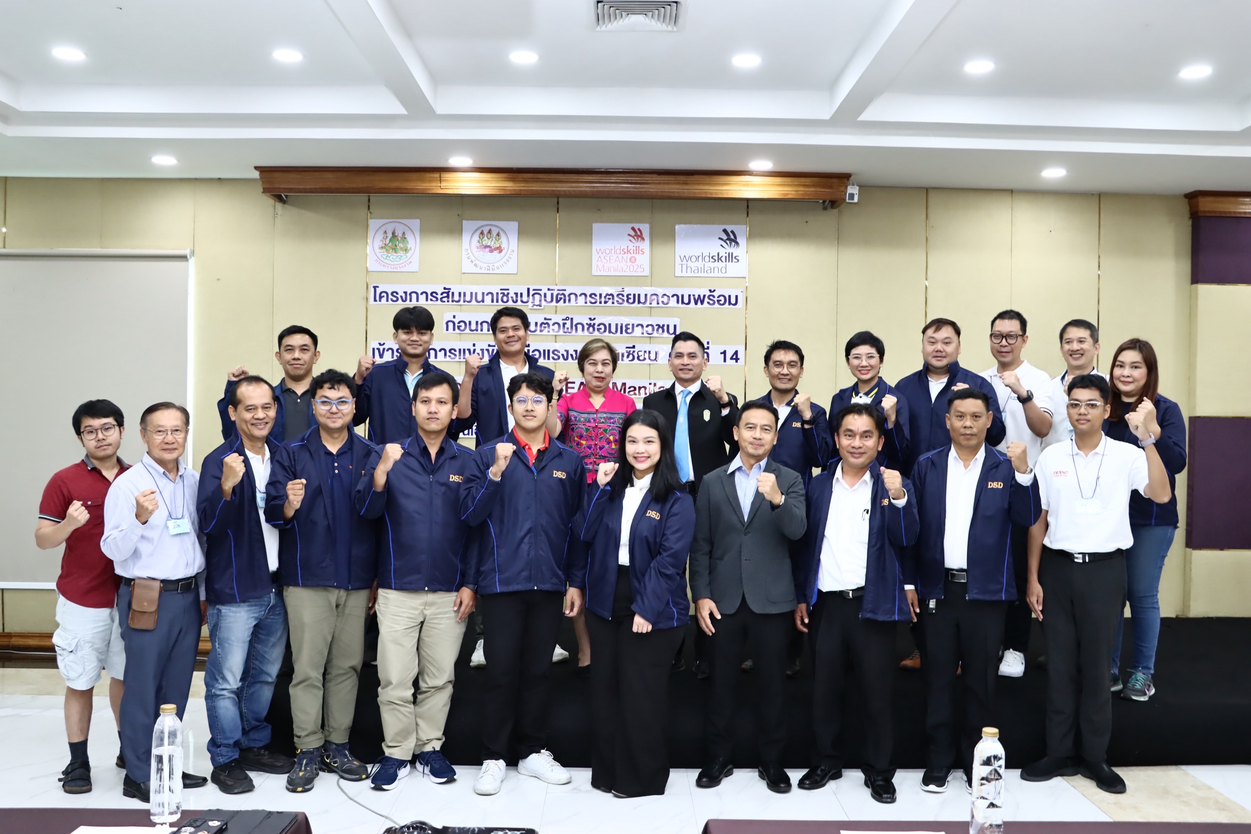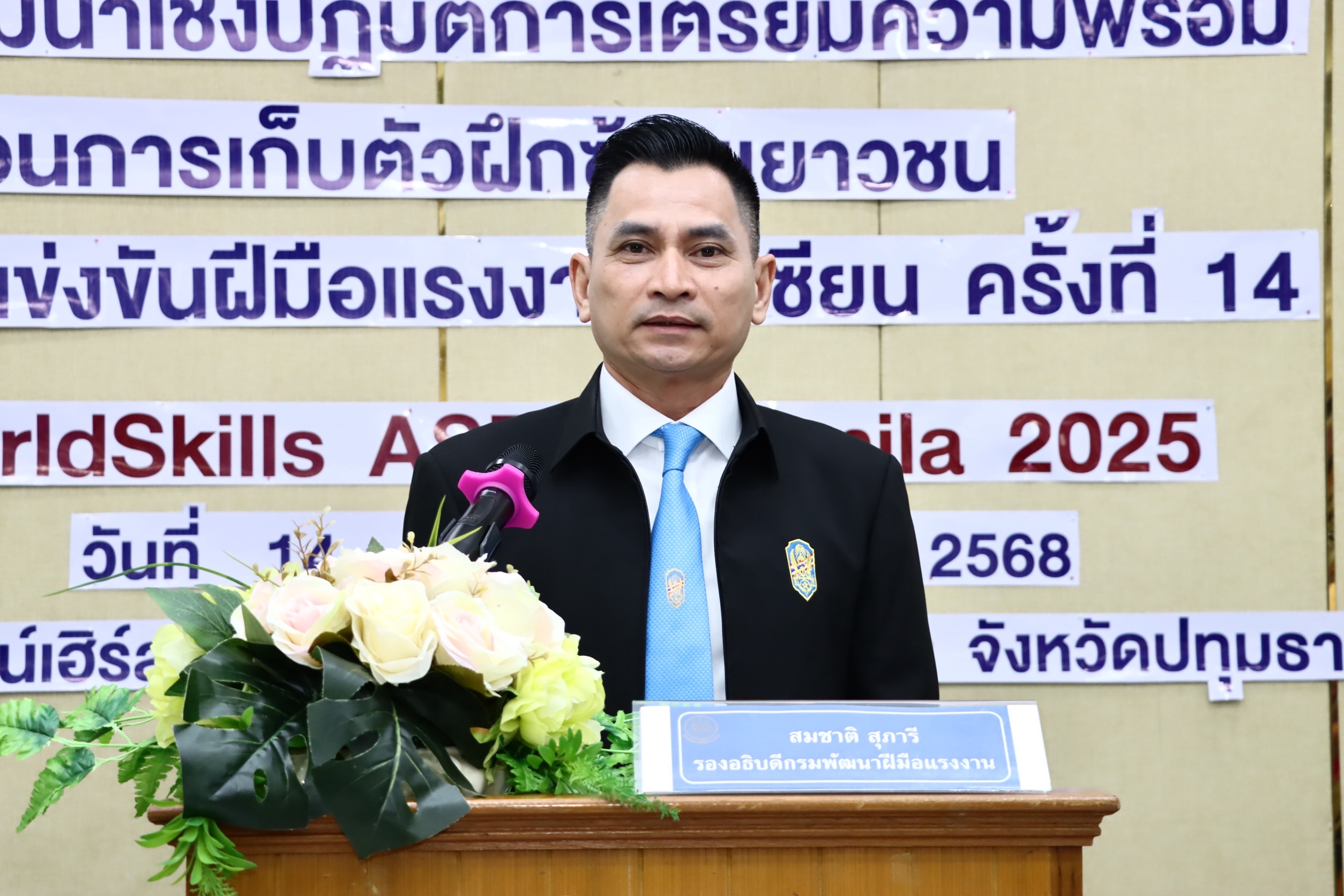 วันที่ 14 พฤษภาคม 2568 นายสมชาติ สุภารี รองอธิบดีกรมพัฒนาฝีมือแรงงาน เป็นประธานในพิธีเปิดการสัมมนาเชิงปฏิบัติการเตรียมความพร้อมก่อนเก็บตัวฝึกซ้อมของเยาวชนที่เข้าร่วมการแข่งขันฝีมือแรงงานอาเซียน ครั้งที่ 14 โดยมี ผู้บริหารกรมพัฒนาฝีมือแรงงาน เยาวชน ผู้เชี่ยวชาญด้านการแข่งขันฝีมือแรงงานร่วมในพิธีดังกล่าว ณ โรงแรมไพน์เฮิร์สท กอล์ฟ คลับ อำเภอคลองหลวง จังหวัดปทุมธานี