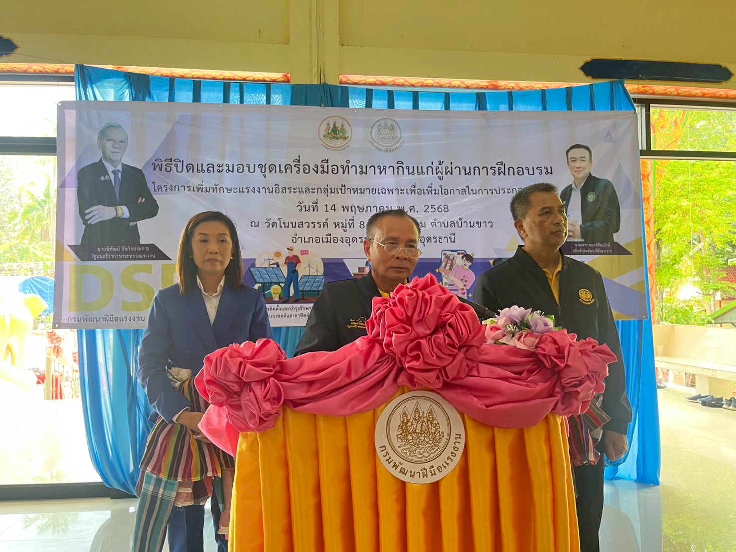 14 พฤษภาคม 2568 กระทรวงแรงงานเดินหน้านโยบาย “ฝึกจบต้องมีรายได้” ส่งต่อถึงแรงงานไทยอย่างเป็นรูปธรรม โดยนายพิพัฒน์ รัชกิจประการ รัฐมนตรีว่าการกระทรวงแรงงาน มอบหมายให้ นายอารี ไกรนรา เลขานุการรัฐมนตรีว่าการกระทรวงแรงงาน เป็นผู้แทนลงพื้นที่จังหวัดอุดรธานี มอบ “เครื่องมือทำมาหากิน” ให้แก่ผู้ผ่านการอบรมทักษะอาชีพ จากโครงการเพิ่มทักษะแรงงานอิสระและกลุ่มเป้าหมายเฉพาะเพื่อเพิ่มโอกาสในการประกอบอาชีพ จัดโดยสถาบันพัฒนาฝีมือแรงงาน 18 อุดรธานี ซึ่งมีนายราชันย์ ซุ้นหั้ว ผู้ว่าราชการจังหวัดอุดรธานี นายเจษฎา จันทร์อุไร ผู้ตรวจราชการกรมพัฒนาฝีมือแรงงาน และหัวหน้าส่วนราชการในจังหวัดร่วมงาน