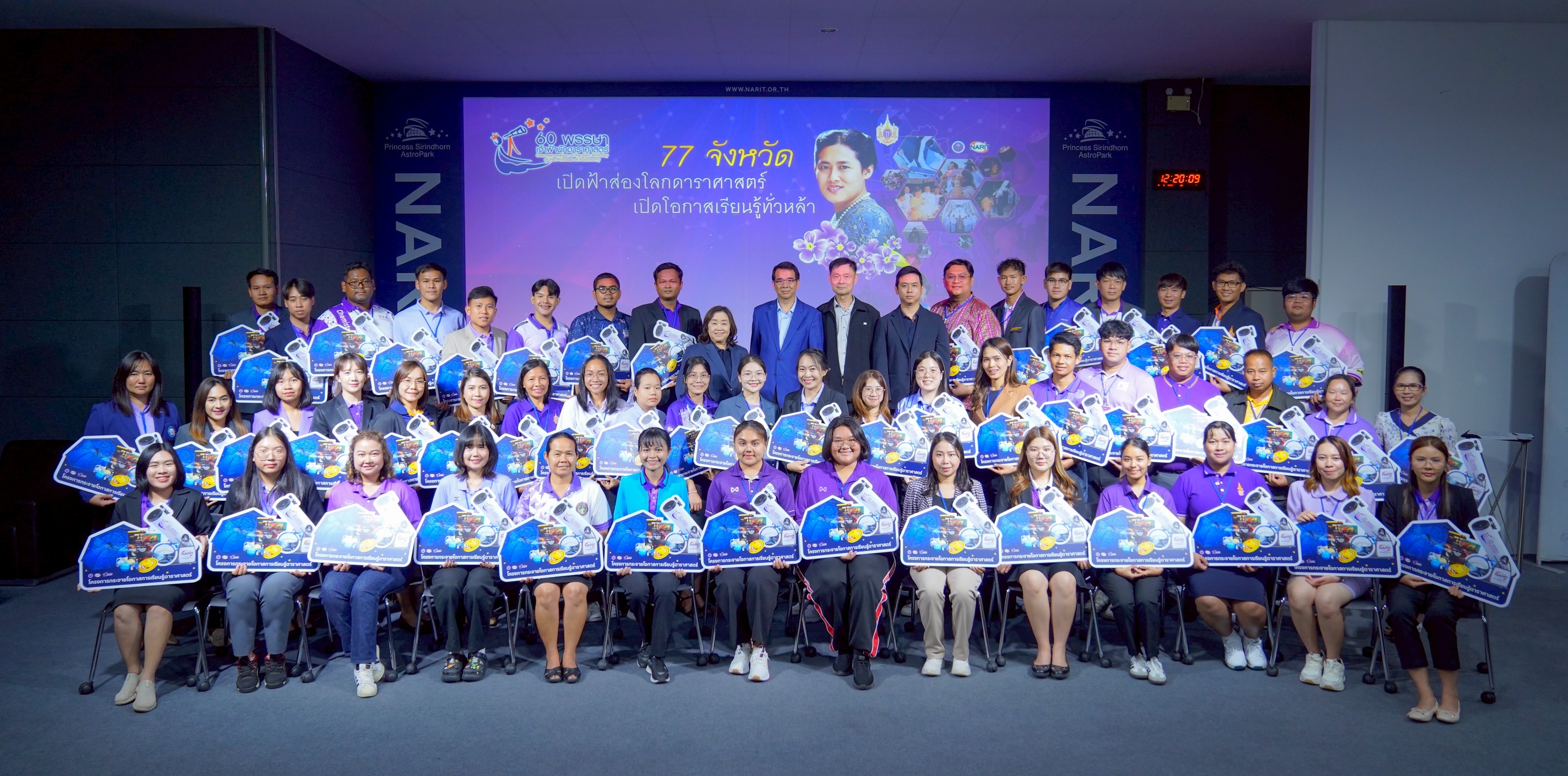 ดร. ศรัณย์ โปษยะจินดา ผู้อำนวยการสถาบันวิจัยดาราศาสตร์แห่งชาติ กล่าวว่า โครงการกระจายโอกาสการเรียนรู้ดาราศาสตร์ “77 จังหวัด เปิดฟ้าส่องโลกดาราศาสตร์ เปิดโอกาสเรียนรู้ทั่วหล้า” เริ่มดำเนินการครั้งแรกในปี 2558 เพื่อเฉลิมพระเกียรติสมเด็จพระกนิษฐาธิราชเจ้า กรมสมเด็จพระเทพรัตนราชสุดา ฯ สยามบรมราชกุมารี ในโอกาสฉลองพระชนมายุ 60 พรรษา สดร. มอบกล้องโทรทรรศน์ และสื่อการเรียนรู้ดาราศาสตร์ พร้อมฝึกอบรมการใช้งาน ให้กับโรงเรียนในพื้นที่ห่างไกล ต่อมาได้รับความสนใจจากโรงเรียนทั่วประเทศ จนกระทั่งปัจจุบันในปี 2568 ก้าวเข้าสู่ปีที่ 11 มอบเพิ่มอีก 50 โรงเรียน รวมมอบแล้วกว่า 710 แห่ง ครบทั่วทั้ง 77 จังหวัดของไทย จำนวนของโรงเรียนที่สมัครเข้าร่วมในแต่ละปีนั้นมากขึ้น แสดงให้เห็นถึงความตื่นตัวในการเรียนการสอนดาราศาสตร์ในประเทศไทยเป็นอย่างดี แต่สิ่งที่สำคัญที่สุดคือการที่สามารถขยายการเรียนรู้ดาราศาสตร์ไปทั่วประเทศ จากการเรียนการสอนในห้องเรียน สู่การเกิดชุมนุมดาราศาสตร์ในโรงเรียน เกิดโครงงานวิจัย ขยายไปสู่การจัดกิจกรรมในชุมชมใกล้เคียง รวมนับหมื่นกิจกรรมตลอดระยะเวลาที่ดำเนินโครงการมา โดยมีกำลังสำคัญคือ เครือข่ายครูดาราศาสตร์อันเข้มแข็งที่เกิดขึ้นจากโครงการนี้นั่นเอง