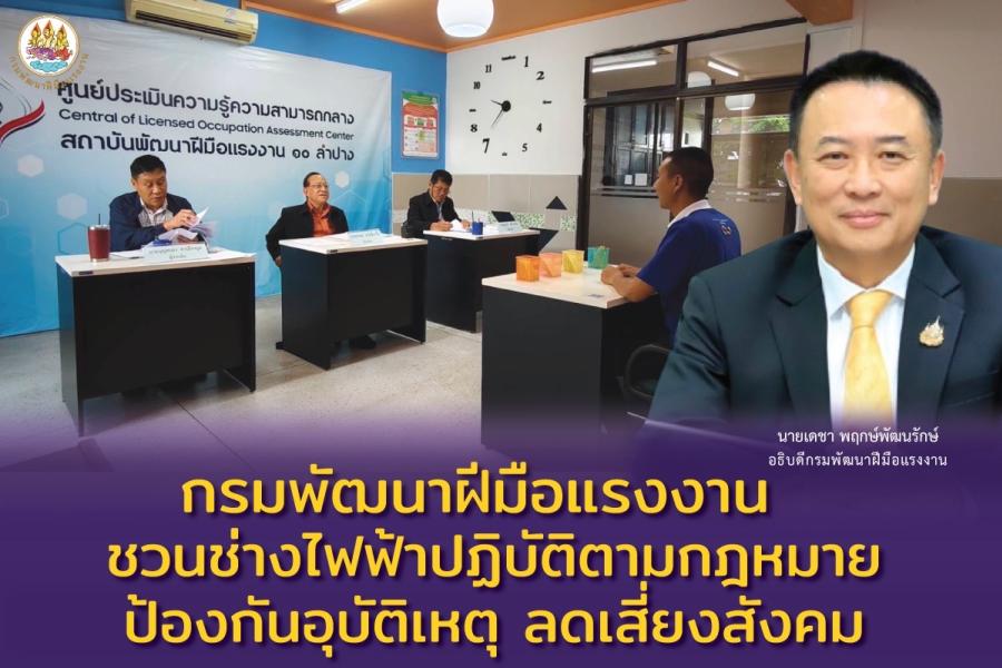กรมพัฒนาฝีมือแรงงาน ประชาสัมพันธ์เชิงรุกชวนช่างไฟฟ้าภายในอาคารประเมินความรู้ความสามารถ ดำเนินการตามกฎหมาย สร้างความปลอดภัยลดอุบัติภัยต่อสังคม