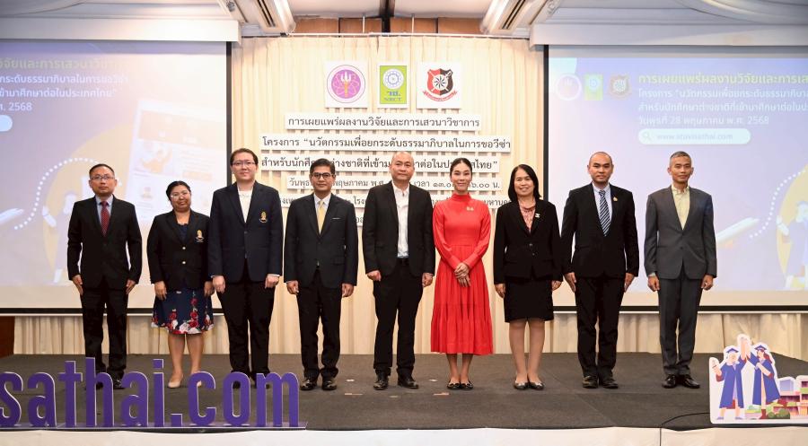 ภายในงาน รศ.พ.ต.อ. สุรัตน์ สาเรือง คณบดีคณะนิติวิทยาศาสตร์ โรงเรียนนายร้อยตำรวจ และ หัวหน้าโครงการ ได้นำเสนอผลการวิจัยโครงการ “นวัตกรรมเพื่อยกระดับธรรมาภิบาลในการขอวีซ่าสำหรับนักศึกษาต่างชาติที่เข้ามาศึกษาต่อในประเทศไทย” พร้อมเปิดตัวแพลตฟอร์มดิจิทัล www.stuvisathai.comสำหรับการอำนวยความสะดวกในการขอวีซ่าของนักศึกษาต่างชาติ ซึ่งสามารถเข้าถึงได้ง่ายจากทุกที่ ทุกเวลา ผ่านอุปกรณ์หลายชนิด มีเป้าหมายหลักในการสนับสนุน อำนวยความสะดวก และยกระดับประสิทธิภาพและคุณภาพของการให้บริการด้านวีซ่าแก่นักศึกษาต่างชาติแบบรอบด้าน ด้วยหลักของการให้ข้อมูลที่ถูกต้อง ครบถ้วน และเข้าใจง่ายเกี่ยวกับเอกสารที่จำเป็นสำหรับการยื่นขอวีซ่า