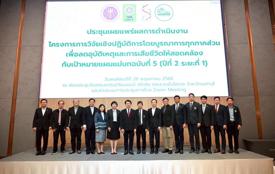 วันที่ 29 พฤษภาคม 2568 สำนักงานการวิจัยแห่งชาติ (วช.) กระทรวงการอุดมศึกษา วิทยาศาสตร์ วิจัยและนวัตกรรม สนับสนุนสมาคมวิศวกรรมชีวการแพทย์ไทย จัดการประชุมเผยแพร่ผลการดำเนินงานโครงการการวิจัยเชิงปฏิบัติการโดยบูรณาการทุกภาคส่วนเพื่อลดอุบัติเหตุและการเสียชีวิตให้สอดคล้องกับเป้าหมายแผนแม่บทฉบับที่ 5 (ปีที่ 2 : ระยะที่ 1) โดย ดร.วิภารัตน์ ดีอ่อง ผู้อำนวยการสำนักงานการวิจัยแห่งชาติ มอบหมายให้ นางสาวเสาวนีย์ มุ่งสุจริตการ รองผู้อำนวยการสำนักงานการวิจัยแห่งชาติ เป็นประธานและมอบนโยบายการผลักดันงานวิจัยเพื่อความปลอดภัยทางถนน พร้อมด้วย นายแพทย์ชาญวิทย์ ทระเทพ หัวหน้าโครงการวิจัยฯ กล่าวรายงาน ณ ห้องประชุมโรงแรมแกรนด์ ริชมอนด์ สไตลิช คอนเวนชั่น โฮเทล จังหวัดนนทบุรี