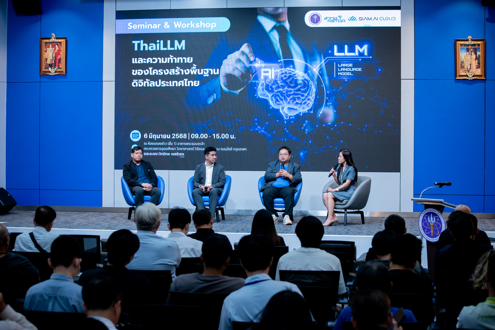 (วันที่ 6 มิถุนายน 2568) ที่ห้องแถลงข่าว ชั้น 1 อาคารพระจอมเกล้า กระทรวงการอุดมศึกษาวิทยาศาสตร์ วิจัย และนวัตกรรม (อว.) สำนักงานพัฒนาวิทยาศาสตร์และเทคโนโลยีแห่งชาติ โดยศูนย์เทคโนโลยีอิเล็กทรอนิกส์และคอมพิวเตอร์แห่งชาติ (เนคเทค) จัดงาน “Thai LLM และความท้าทายโครงสร้างพื้นฐานดิจิทัลของประเทศไทย” พร้อมทั้งพิธีลงนามบันทึกข้อตกลงความร่วมมือด้านการวิจัยและพัฒนาด้านปัญญาประดิษฐ์ เพื่อสนับสนุนกิจกรรมและการแลกเปลี่ยนองค์ความรู้ในการพัฒนาแบบจำลองภาษาขนาดใหญ่ (Large Language Model: LLM) โดยมีศาสตราจารย์ ดร.ชูกิจ ลิมปิจำนงค์ ผู้อำนวยการ สวทช. และ นายรัตนพล วงศ์นภาจันทร์ ประธานกรรมการบริหาร บริษัท สยาม เอไอ คอร์เปอเรชั่น จำกัด ร่วมลงนามบันทึกข้อตกลงความร่วมมือด้านการวิจัยและพัฒนาปัญญาประดิษฐ์ เพื่อสนับสนุนการพัฒนาแบบจำลองภาษาขนาดใหญ่ โดยเฉพาะ Thai LLM ที่เข้าใจบริบทและวัฒนธรรมไทยอย่างแท้จริง โดยมี นายณัฐพงษ์ ช่วยบำรุง Chief Technology Officer และดร.ชัย วุฒิวิวัฒน์ชัย ผู้อำนวยการ เนคเทค สวทช. ร่วมเป็นสักขีพยาน