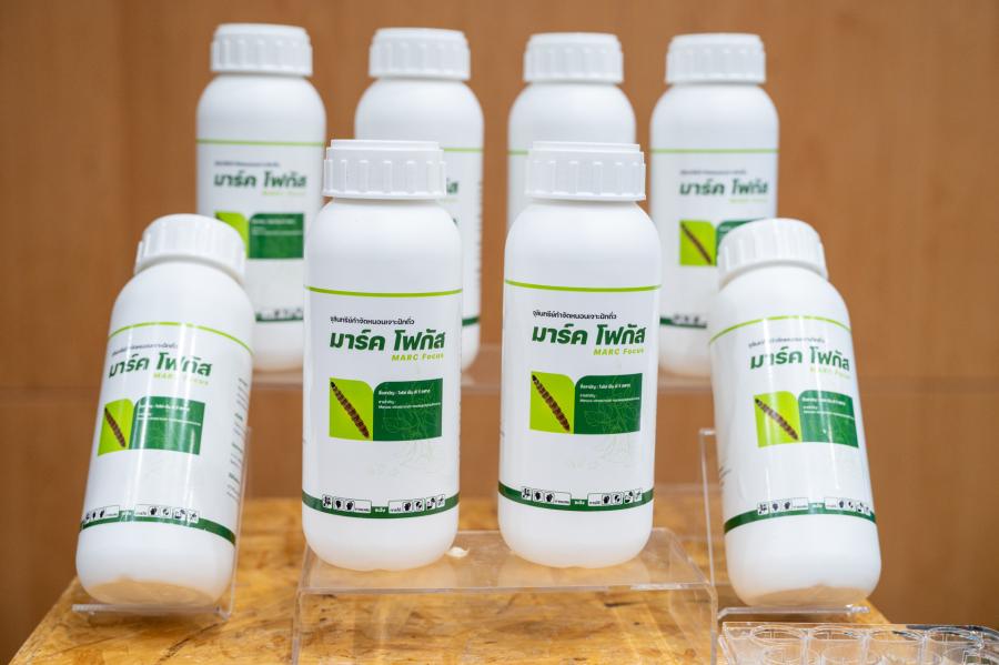 จากปัญหาหนอนเจาะฝักถั่วที่เป็นภัยคุกคามสำคัญต่อผลผลิตถั่วฝักยาว ทีมวิจัยเทคโนโลยีการควบคุมทางชีวภาพ (ABCT) ไบโอเทค สวทช. ได้พัฒนานวัตกรรมชีวภาพชื่อว่า “NPV หนอนเจาะฝักถั่ว” (MaviMNPV Maruca vitrata multi-nucleopolyhedrovirus) ซึ่งเป็นจุลินทรีย์ธรรมชาติที่มีประสิทธิภาพสูงในการควบคุมศัตรูพืชอย่างหนอนเจาะฝักถั่วหรือหนอนเจาะฝักลายจุด โดยมีกลไกการทำงานและความปลอดภัยคือ NPV หนอนเจาะฝักถั่วเป็นไวรัสที่ก่อโรคในแมลงศัตรูพืชโดยเฉพาะ และมีความจำเพาะเจาะจงกับหนอนเจาะฝักถั่ว (Bean pod borer) หรือหนอนเจาะฝักลายจุด (Spotted pod borer) เท่านั้น ทำให้มั่นใจได้ว่า ไม่เป็นอันตรายต่อคน สัตว์ และสิ่งแวดล้อม เมื่อหนอนเจาะฝักถั่วกินไวรัส NPV นี้เข้าไป จะแสดงอาการติดเชื้อภายใน 3-4 วัน โดยหนอนจะกินอาหารน้อยลง เคลื่อนไหวช้าลง ลำตัวจะเปลี่ยนเป็นสีชมพูเข้ม และสุดท้ายจะตายลงในที่สุด