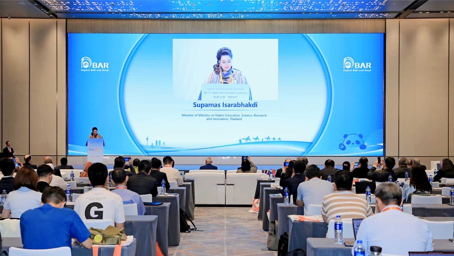 นางสาวศุภมาส อิศรภักดี รัฐมนตรีว่าการกระทรวงการอุดมศึกษา วิทยาศาสตร์ วิจัยและนวัตกรรม (อว.) นำคณะผู้บริหาร อว. ประกอบด้วย ดร. วิภารัตน์ ดีอ่อง ผู้อำนวยการสำนักงานการวิจัยแห่งชาติ ดร.ปกรณ์ อาภาพันธุ์ ผู้อำนวยการสำนักงานพัฒนาเทคโนโลยีอวกาศและภูมิสารสนเทศ ผศ.ดร. วีรชัย อาจหาญ ผู้ว่าการสถาบันวิจัยวิทยาศาสตร์และเทคโนโลยีแห่งประเทศไทย และ ดร. ณิรวัฒน์ ธรรมจักร์ ผู้อำนวยการหน่วยบริหารและจัดการทุนด้านการพัฒนากำลังคนและทุนด้านการพัฒนาสถาบันอุดมศึกษา การวิจัยและการสร้างนวัตกรรม พร้อมด้วย ดร. มณทิพย์ ศรีรัตนา ผู้อำนวยการศูนย์แห่งความเป็นเลิศนานาชาติ หนึ่งแถบหนึ่งเส้นทาง กรุงเทพฯ ภายใต้การดำเนินงานของ วช. ผู้ทรงคุณวุฒิ และบุคลากร วช. เข้าร่วมงาน The 9th Digital Belt and Rode Conference หรือ DBAR 2025 ระหว่างวันที่ 9 – 11 มิถุนายน 2568 ณ เมืองเฉิงตู สาธารณรัฐประชาชนจีน